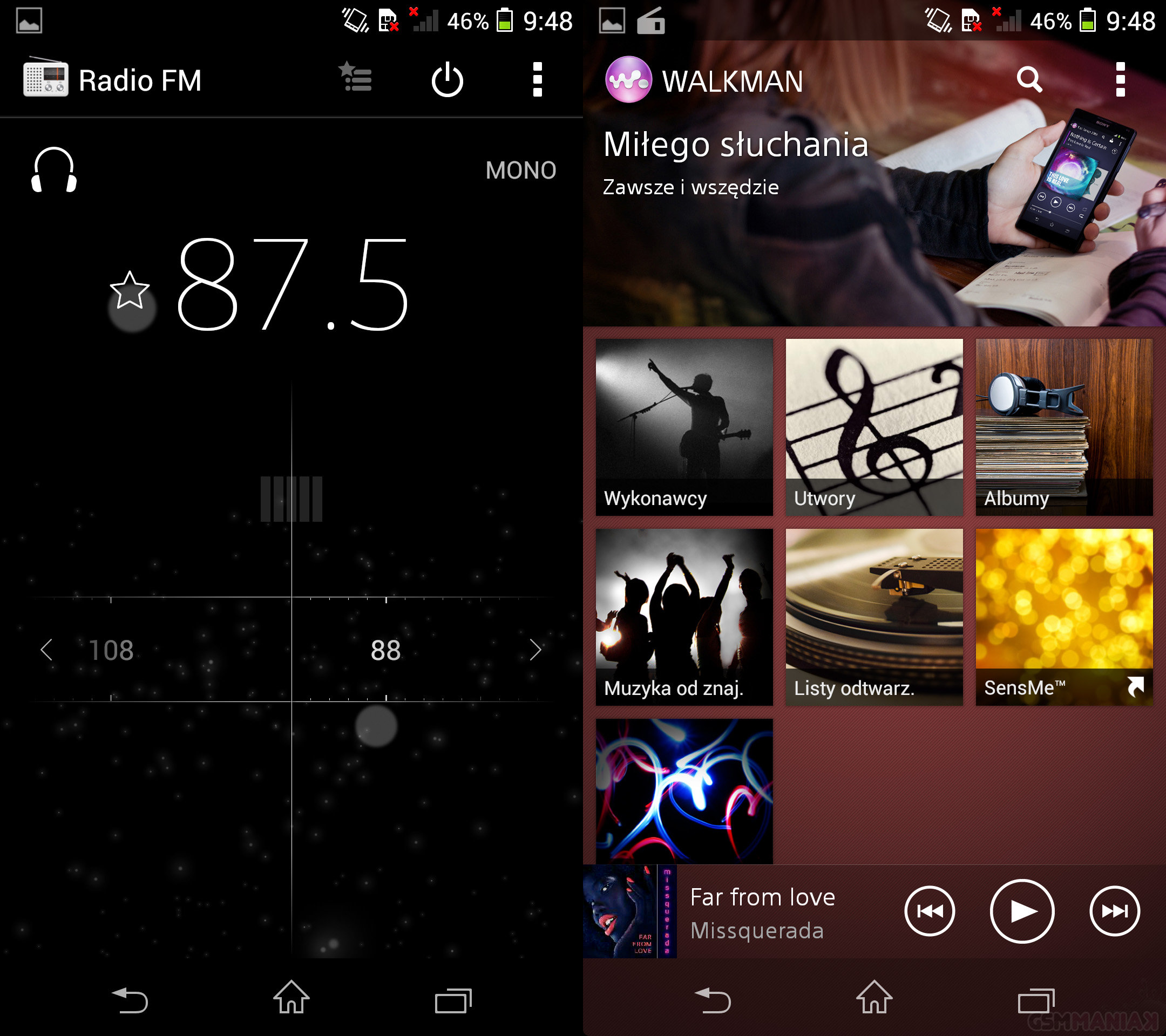 Aplikacja odpowiedzialna za muzykę jest jedną z lepszych dzięki niezłemu equalizerowi, funkcji „dynamicznej normalizacji”, dostępowi do serwisu PlayNow czy wsparciu udostępniania dźwięków przez Bluetooth. Sony postanowiło też zaimplementować tu opcję 3D Surround Sound i tryb niskiego zużycia energii.