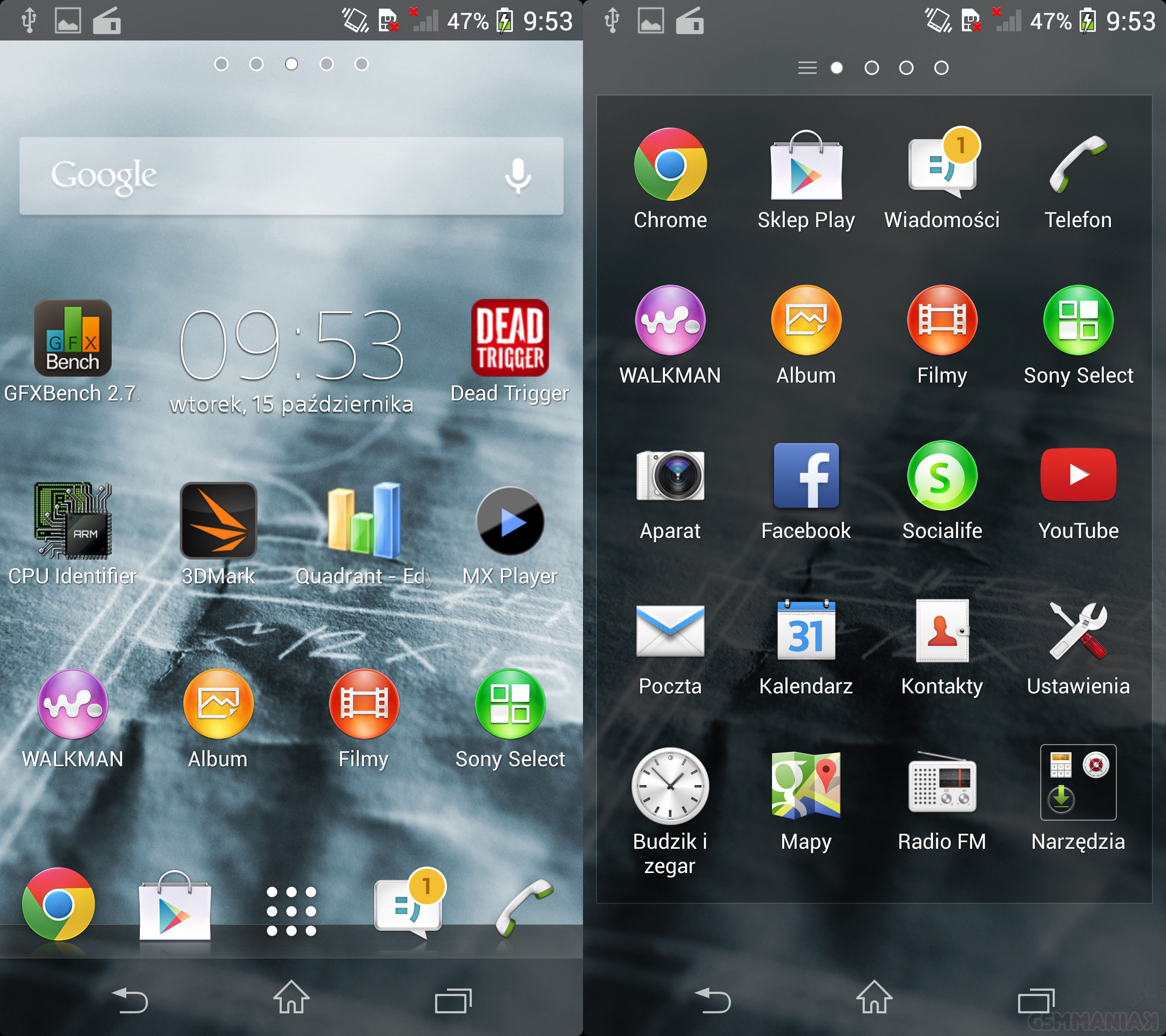 Zacznijmy od interfejsu użytkownika, bo w końcu na to będziecie patrzeć najczęściej. Z wykorzystaniem Androida 4.2.2 Jelly Bean, Sony postarało się o własną (stosowaną też w innych telefonach tej marki), przyjazną dla użytkownika nakładkę.