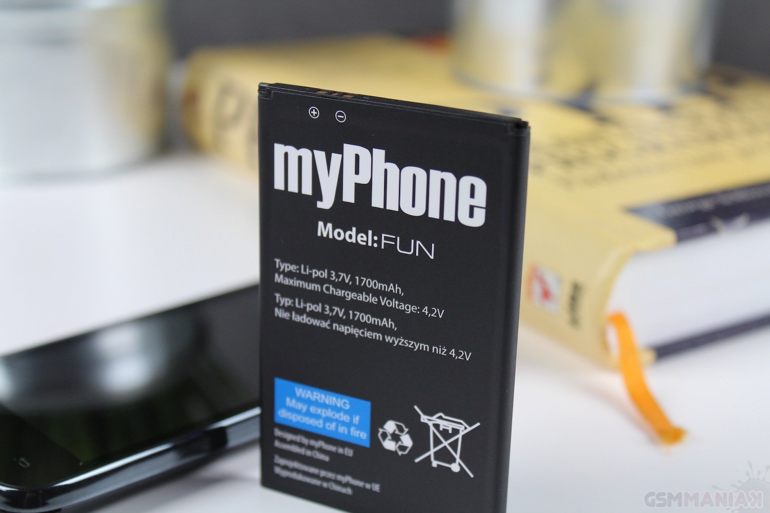 myPhone’a FUN wyposażono w litowo-polimerowe ogniowo o pojemności 1700 mAh, które przy specyfikacji telefonu pozwala na godziwe przebiegi. W naszych testach wystarczyło na ponad 6 godzin ciągłego odtwarzania wideo i 7 korzystania z Internetu przy użyciu modułu Wi-Fi. Zaskakuje czas potrzebny do pełnego naładowania baterii: 3,5 godziny to mimo wszystko zbyt długo.