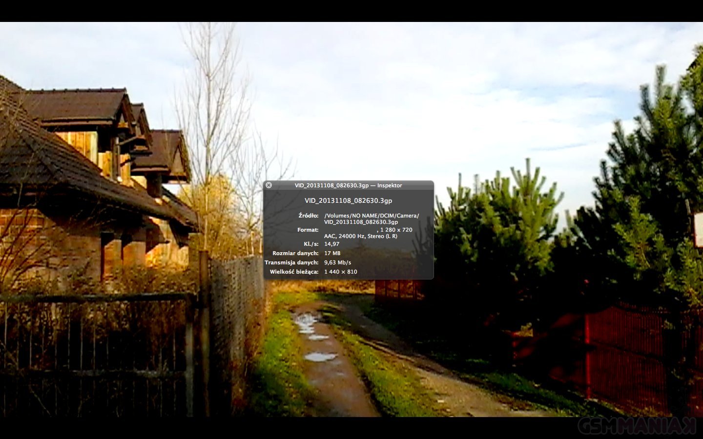 Tryb filmowania nie przynosi dodatkowych opcji ustawień. Wielkim zaskoczeniem, ze względu na cenę urządzenia jest rzekoma możliwość kręcenia filmów w rozdzielczości 720p zapisywanych we formacie 3GP.