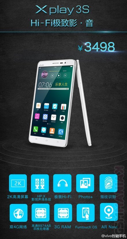 Przedstawiciele marki Vivo poinformowali, iż sugerowana cena detaliczna modelu Xplay 3S, wynosi 3498 juanów (około 1750 złotych).