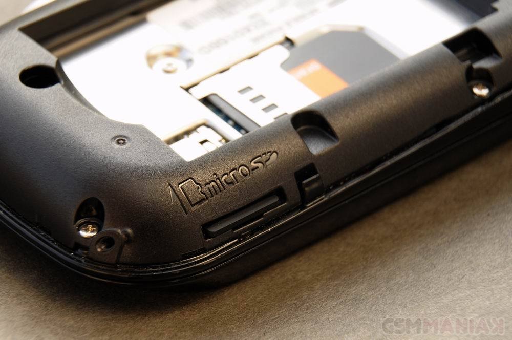 Aby włożyć kartę SIM oraz kartę pamięci, należy zdjąć tylną pokrywę telefonu. Kartę SIM wsuwa się w odpowiednie miejsce położone pod baterią. Slot kary pamięci tkwi w bocznej krawędzi urządzenia. Wszystko to bardzo dobrze widoczne jest na poniższych zdjęciach.