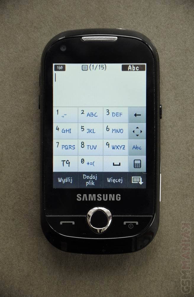 Przy okazji omawiania ekranu, warto wspomnieć o wirtualnej klawiaturze alfanumerycznej. Jej wygląd jest typowy, jednakże bardzo brakuje mi przycisku, który otwierałby okno ze znakami przestankowymi, nawiasami i wszystkim tym, co potrzebne jest do konstruowania emotikonek. Z drugiej strony, wątpię czy ktokolwiek będzie używał tej klawiatury do pisania SMSów.