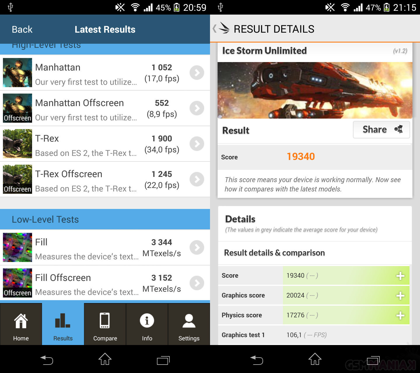 Nowy GFXBench 3.0 nie był przeszkodą dla małej Xperii. W najbardziej wymagającym teście – Manhattanie 3.0 – sprzęt pokazał pazur, zapewniając nam w trybie Onscreen płynne odtwarzanie animacji. Wyniki 3DMarka osiągalne były wyłącznie dla najwyższego ustawienia – Unlimited. W pozostałych, czyli klasycznym Ice Stormie i wersji Extreme, Xperia Z1 Compact przekroczyła skalę.