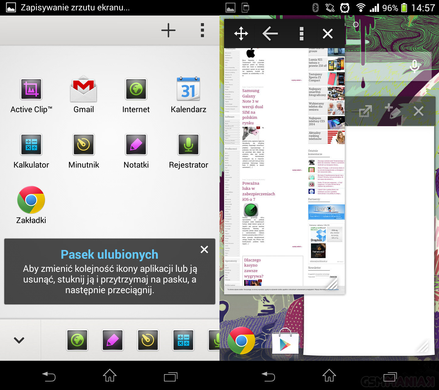 Kolejna ciekawostka to zestaw mini-aplikacji, które wyświetlane są na ekranie domowym „nad” każdym widżetem i resztą ikonek. To wygodne – zwłaszcza wtedy, gdy chcemy jednocześnie przeglądać sieć i, przykładowo, tworzyć notatki. Identyczny software pojawił się m.in. w Xperii Z Ultra i Xperii Z1.