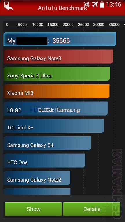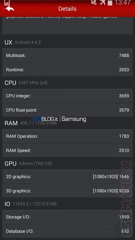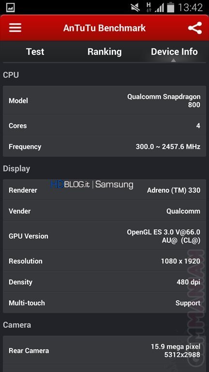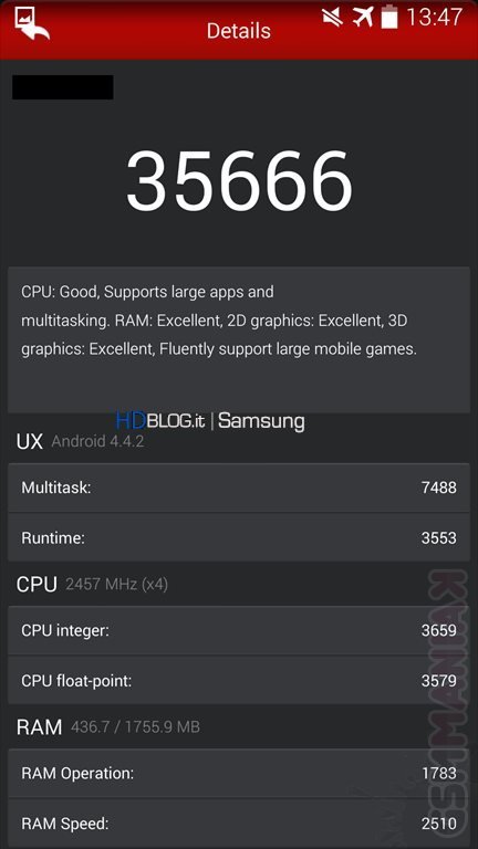 Zdjęcia będzie można wykonać w maksymalnej rozdzielczości 5312 x 2988 pikseli, przy wykorzystaniu 15.9-megapikselowego przetwornika, zaś do wideo połączeń posłuży kamera frontowa o matrycy 2.1 Mpx. Nad wszystkim kontrolę sprawować będzie system Google Android 4.4.2 KitKat. Konfiguracja sprzętowa pozwoliła zakończyć test z wynikiem 35666 punktów.