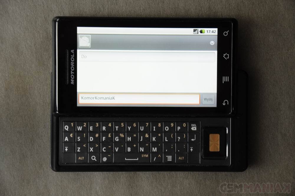 Motorola została wyposażona w wysuwaną klawiaturę QWERTY. Proces przesuwania jednego elementu obudowy względem drugiego, przebiega z delikatnym, aczkolwiek miłym oporem, a odpowiednią pozycję (zsuniętą bądź rozsuniętą) sygnalizuje charakterystyczne kliknięcie.