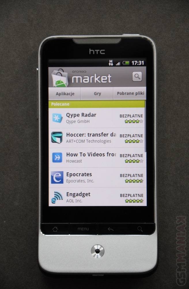 Android Market w Legend jest w odświeżonej wersji. Kolorystyka jest biało-zielona z szarymi motywami. Artykuły zostały podzielone na gry i aplikacje. Wewnątrz nich znajdziemy dodatkowe, która pomogą nam w odnalezieniu interesującej aplikacji. Oprócz tego jest jeszcze wyszukiwarka.