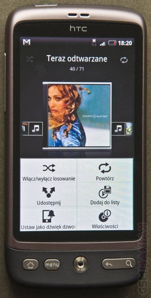Czy HTC Desire jest telefonem multimedialnym? Powiedziałbym, że każdy smartfon jest multimedialny, tylko jedne radzą sobie z tym lepiej, a inne gorzej. Jak sytuacja przedstawia się w przypadku testowanego przeze mnie telefonu? Pozwólcie, że zacznę od jakości muzyki i odtwarzacza.