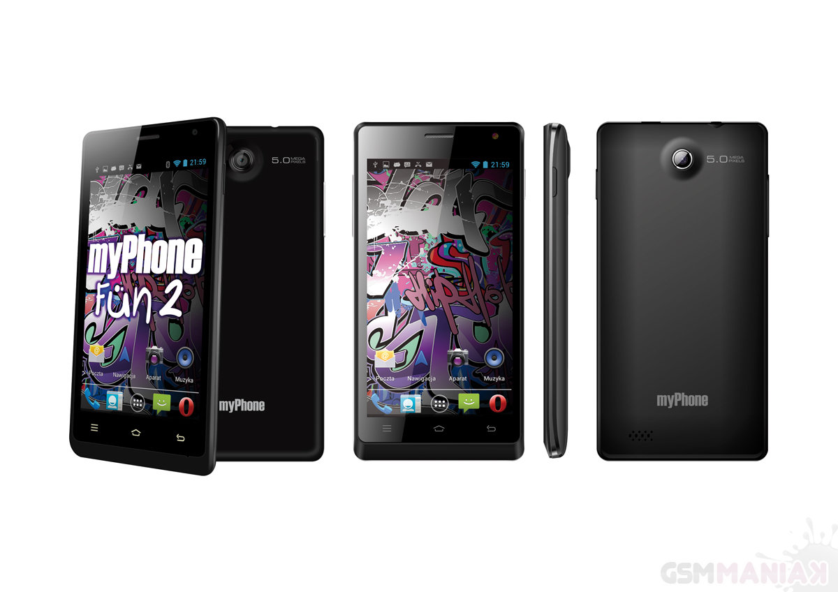 Nowa wersja multimedialnego smartfona myPhone Fun 2 nie różni się dużo od pierwszej generacji. W porównaniu do poprzednika, producent zastosował lepszy aparat fotograficzny, model Samsung E14, o matrycy 5 megapikseli. Kamera pozwoli na nagrywanie filmów w jakości 720p z prędkością 30 fps. Na wyposażeniu jest jeszcze autofokus oraz HDR. Postawiono również na większy wyświetlacz. W myPhone Fun 2 zastosowano ekran o przekątnej 4,5 cala i rozdzielczości 850×480 pikseli. Paleta barw wynosi 16 mln kolorów, a stosunek punktów na cal wynosi 240 dpi. System operacyjny to oczywiście Google Android w wersji 4.2.