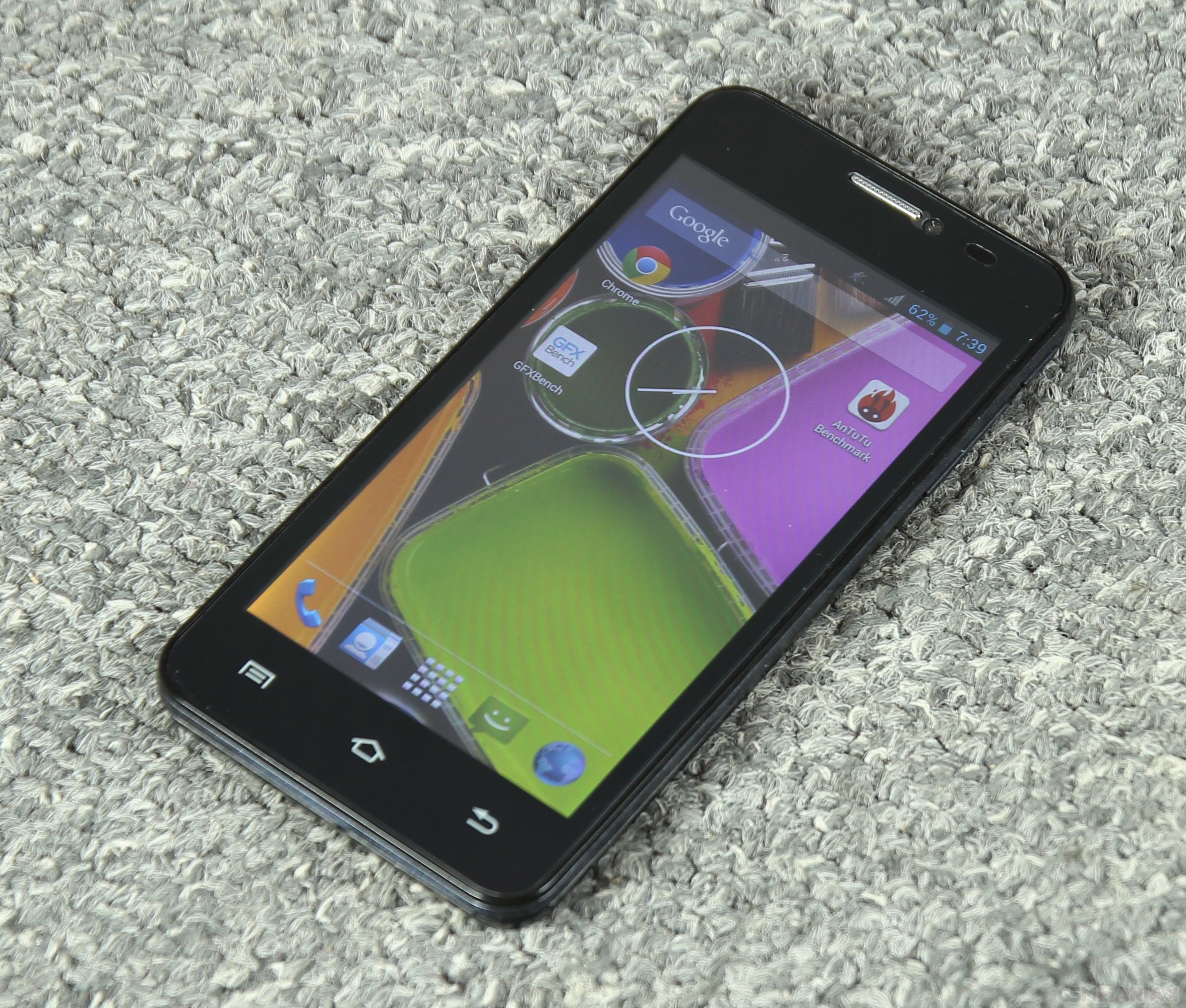 Wyświetlacz zastosowany w tym modelu to 4,5-calowy IPS o rozdzielczości 960×540. Pod względem jakości wyświetlanych barw nie można mu nic zarzucić. Kolory są nasycone i naturalne, bez odchyleń w żadną stronę, ostrość obrazu również stoi na bardzo przyzwoitym poziomie. Zagęszczenie pikseli wynoszące 245 na cal to bez wątpliwości najlepszy wynik w tej półce cenowej. Przeglądanie drobnych treści na stronach internetowych nie stanowi zatem problemu, a czcionki są niemal idealnie gładkie.