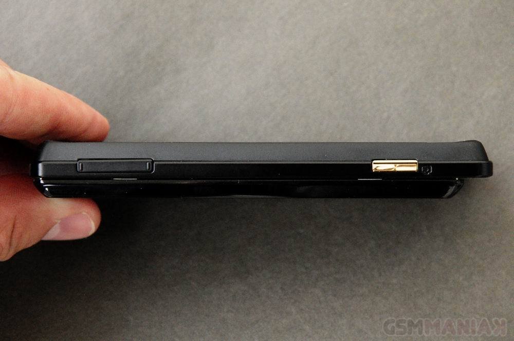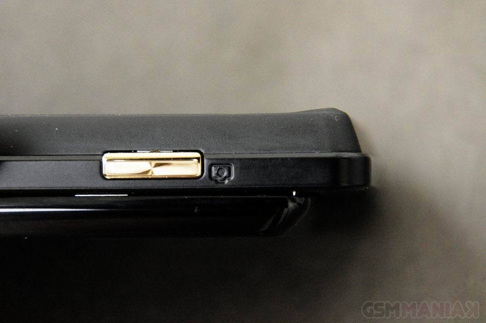 Na prawym brzegu znajduje się (idąc od góry) podłużny przycisk regulacji głośności oraz przycisk dedykowany aparatowi fotograficznemu. Jego działanie jest bardzo sprytnie pomyślane. Otóż jedno naciśnięcie (gdy nie jesteśmy w trybie robienia zdjęć a na ekranie głównym) nie spowoduje przejścia do trybu aparatu. Aby tego dokonać, należy przez chwilę przytrzymać ów przycisk. Jest to świetne rozwiązanie, które wyklucza niechciane uruchomienie trybu robienia zdjęć. Jak sami widzicie, przycisk jest złotego koloru.