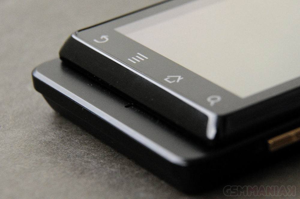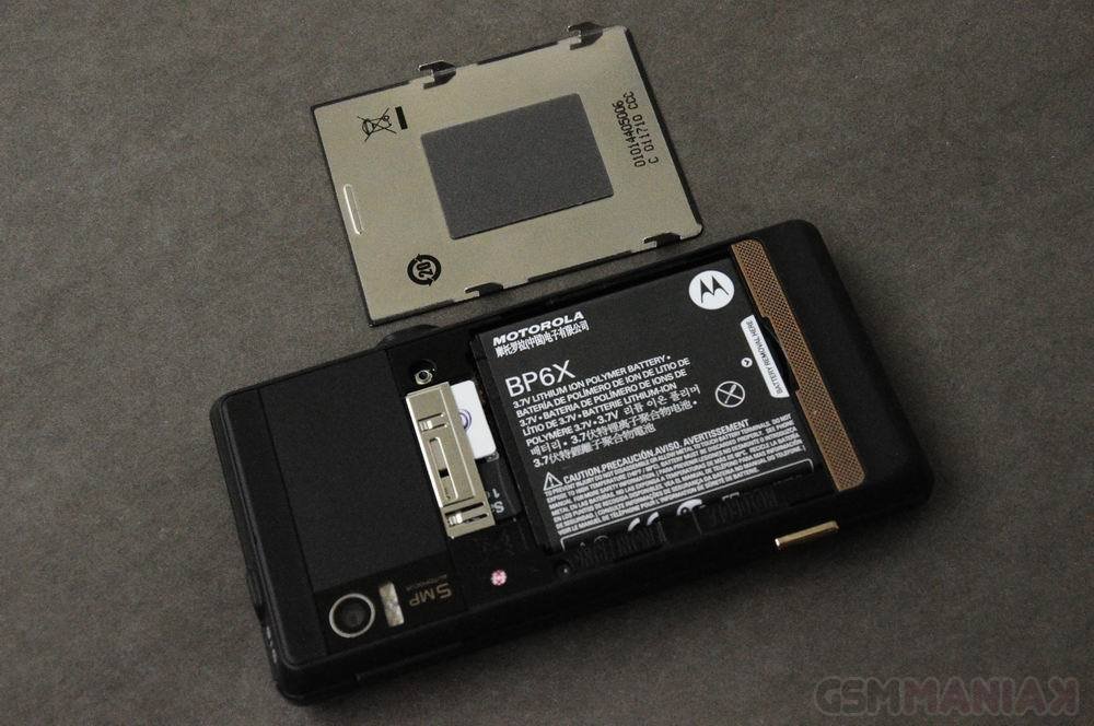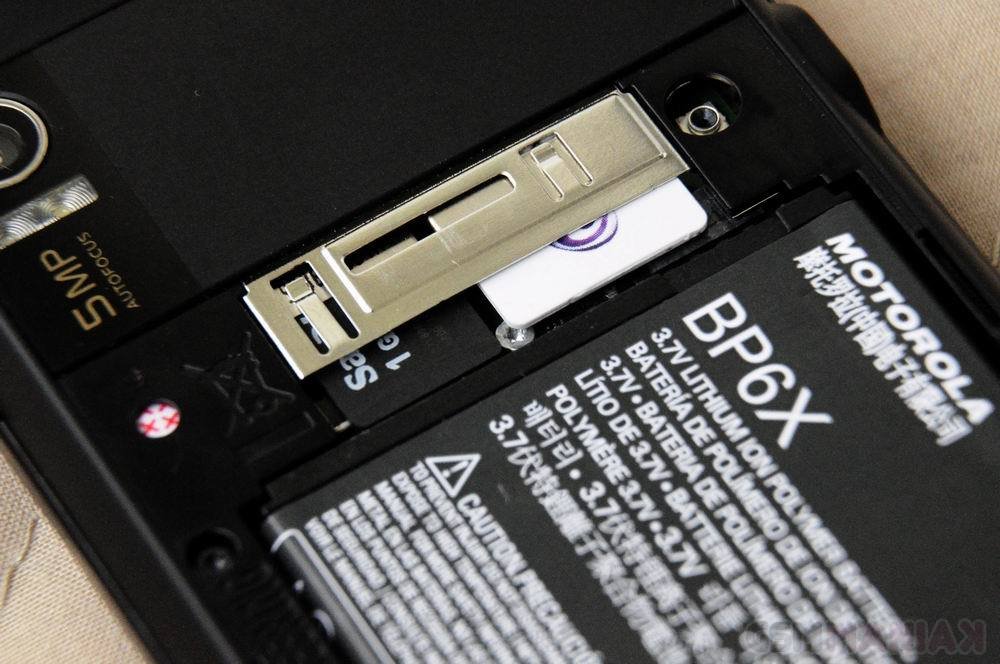 Umiejscowienie kart widoczne jest na zdjęciu poniżej. Milestone jest więc kolejnym telefonem, który wymaga wyjęcia baterii w celu dostania się do obu kart. Jest to delikatne utrudnienie, jednakże bardzo często spotykane.