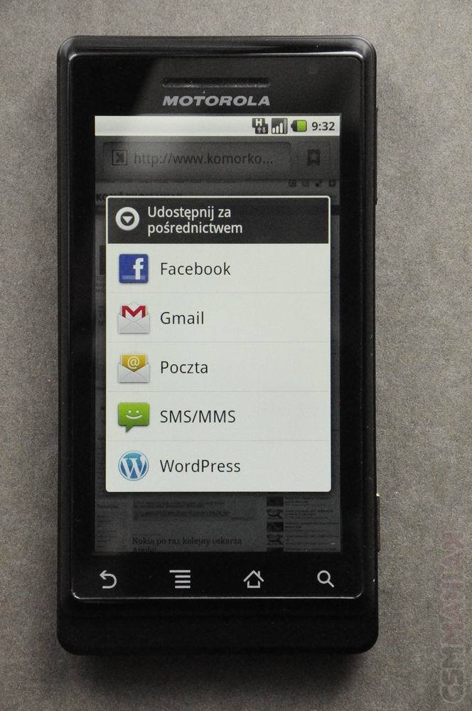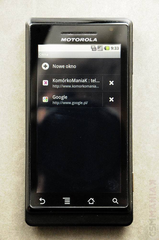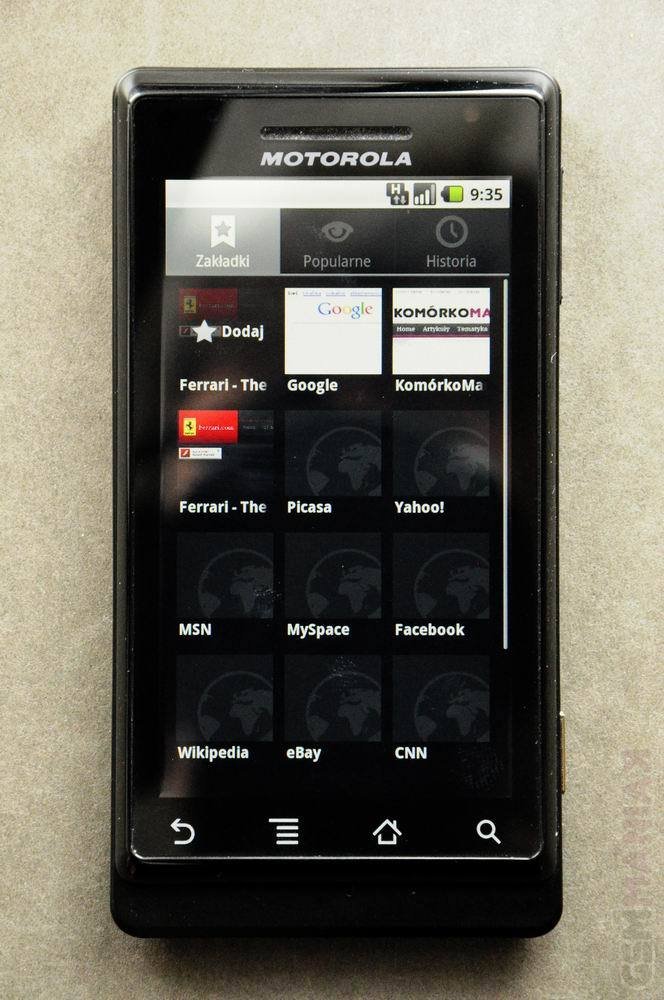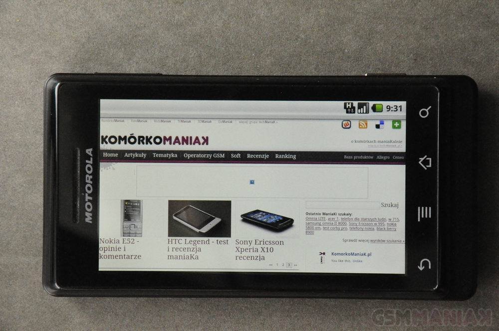 Przeglądarka internetowa z Milestone spisuje się świetnie. Korzystanie z niej jest bardzo wygodne i nie sprawia najmniejszych problemów. Strony otwierają się szybko (chociaż to jest również zasługą łączności HSPA). Przewijanie nie jest może tak płynne jak w np. HTC Desire, ale nie można mieć większych zastrzeżeń.