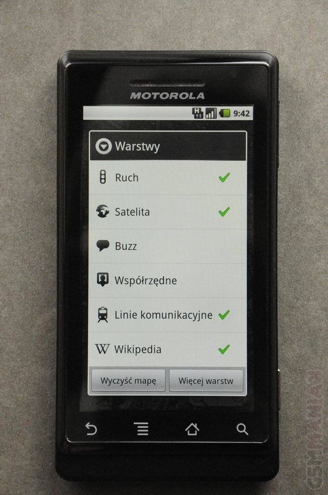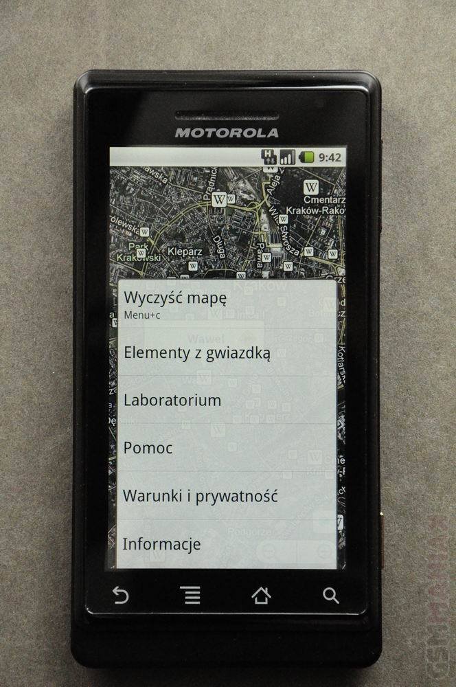 Motorola oferuje multidotyk również na poziomie map. Przybliżanie oraz oddalanie odbywa się dokładnie w taki sam sposób jak w przeglądarce internetowej. Takie rozwiązanie znacząco poprawia komfort korzystania z aplikacji.