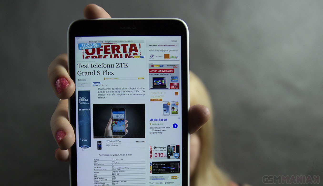 Nawigacja po menu głównym, internecie, ustawieniach i wszystkich innych aplikacjach jest płynna i bezproblemowa. Stockową przeglądarką na WP8 jest Internet Explorer i pomimo krytyki, którą zbiera wersja z Windowsa, ta radzi sobie całkiem dobrze. Zaledwie raz zdarzyło się, że musiałam dwukrotnie ściągnąć interesującego mnie pdf’a, bo za pierwszym razem wystąpił jakiś błąd – poza tym korzystałam z internetu mobilnego naprawdę sporo, by przetestować LTE (ale o tym dalej…) i innych przykrych przygód nie doświadczyłam.