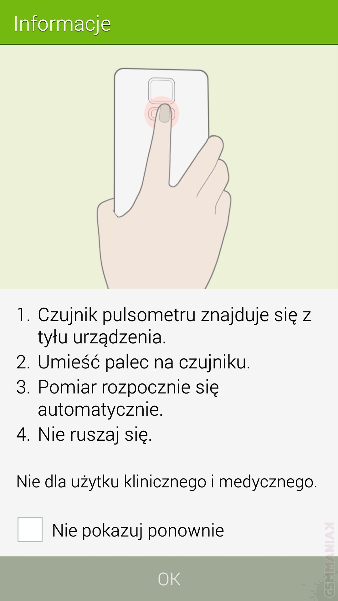 Zrobiłem test: wziąłem dwa cyfrowe ciśnieniomierze i porównałem z pulsomierzem Samsunga. Dedykowane urządzenia wskazały 83 i 81 uderzeń na minutę, natomiast Galaxy S5 informował uparcie, że moje serce nie przekracza wartości 72 uderzeń. Niedokładność można jednak wybaczyć, ale niemożliwości zastosowania w biegu już nie. Jeśli lubicie aktywnie spędzać czas i zależy Wam na funkcjonalności dostarczanej przez dedykowane „fit-zegarki”, to z samym S5 na to nie liczcie.