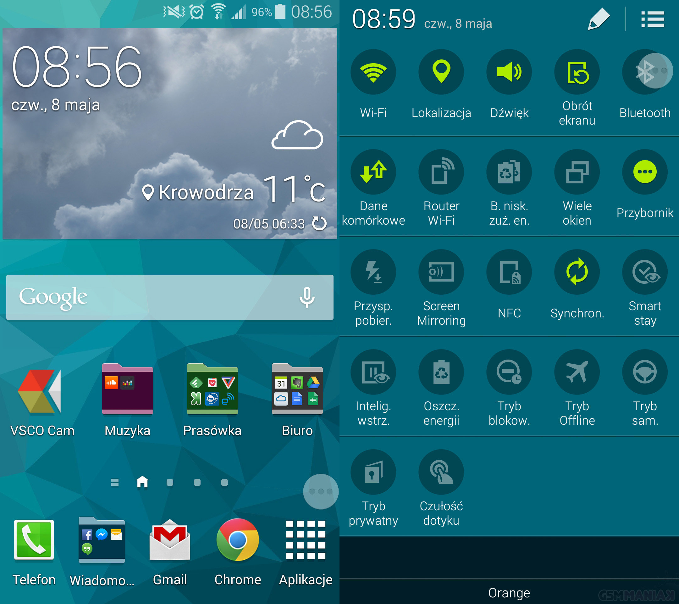 Smartfon oparto na Androidzie 4.4.2 KitKat (wersja oprogramowania to KOT49H.G900FXXU1ANCE), doposażając go w nową wersję nakładki TouchWiz. A że o samym „robociku” napisaliśmy już chyba wszystko – przejdźmy do tej drugiej kwestii.