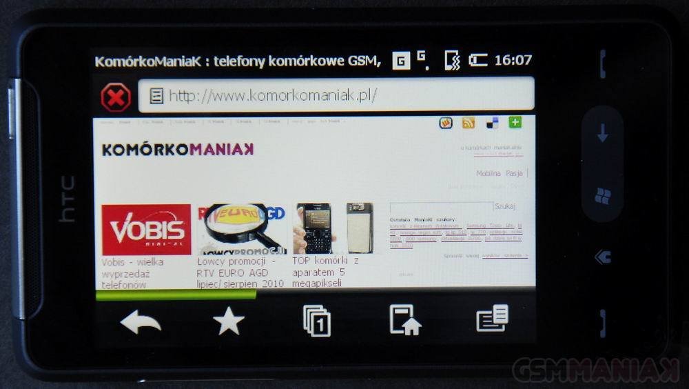 HD mini radzi sobie w tej kwestii bardzo dobrze. Strony internetowe możemy przeglądać dzięki uprzejmości Opery Mobile oraz (jak kto woli, ale myślę że niewiele osób zda się na tą opcję) Internet Explorer. Pomaga nam w tym łączność HSPA.