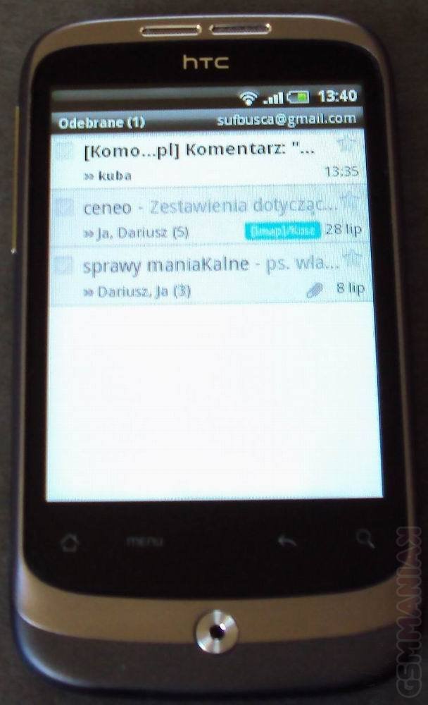 W Wildfire korzystamy z poczty zasadniczo w dwojaki sposób. Pierwszy to aplikacja przygotowana przez HTC, natomiast druga to aplikacja Gmail.