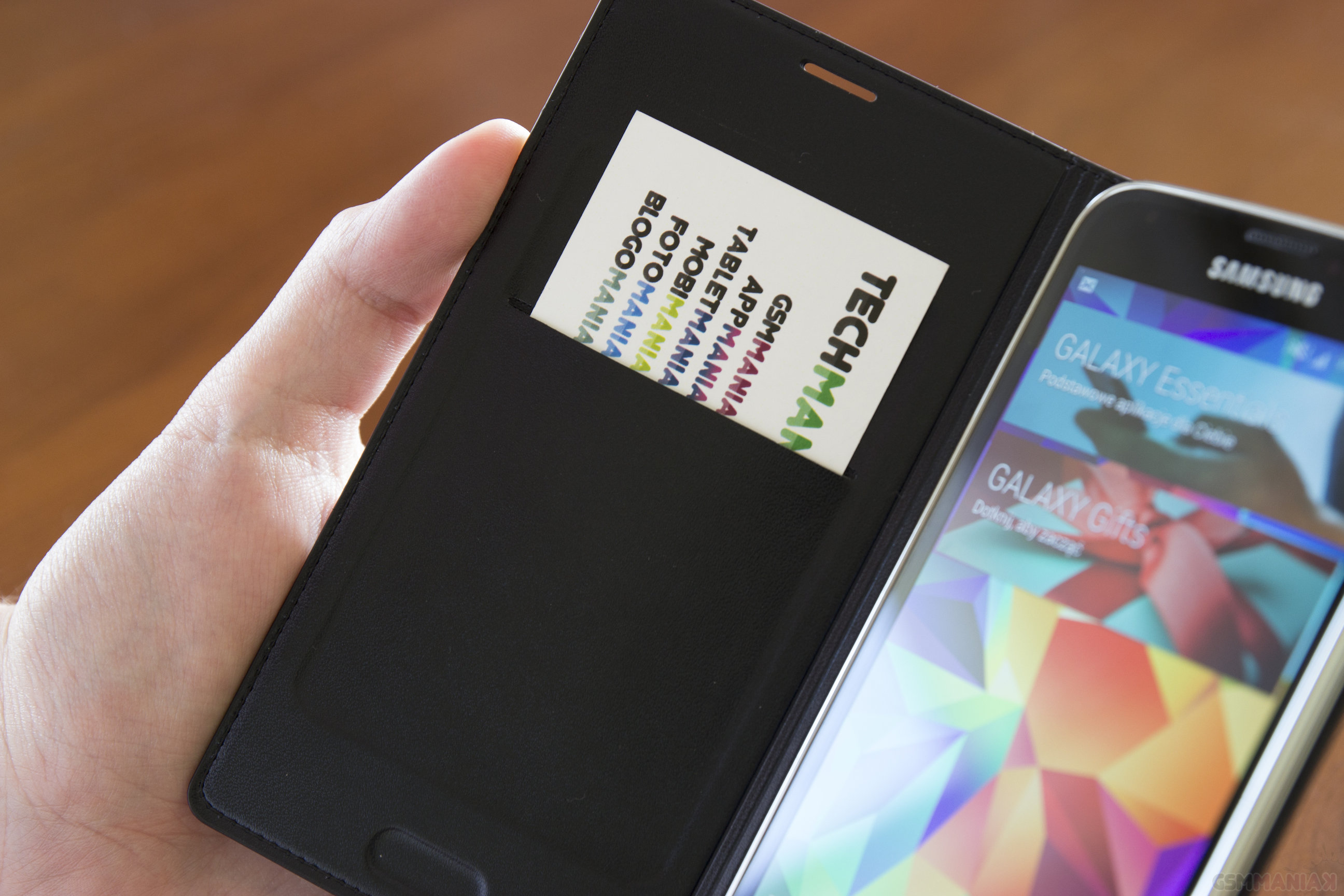 Flip Cover ma postać książeczki, w której schowany jest telefon. Nałożenie futerału wymaga uprzedniego demontażu tylnej klapki Galaxy S5, a następnie wpięcia korpusu w zapięcia etui. W efekcie otrzymujemy ochraniacz zintegrowany z korpusem urządzenia. Takie rozwiązanie jest niezwykle praktyczne, ponieważ całość pozostaje wciąż cienka. Dodatkowym atutem, którego sam nie byłem świadom aż do momentu otrzymania etui, jest wbudowana płytka indukcyjna. Po zamontowaniu Flip Walleta możemy korzystać z możliwości ładowania bezprzewodowego.