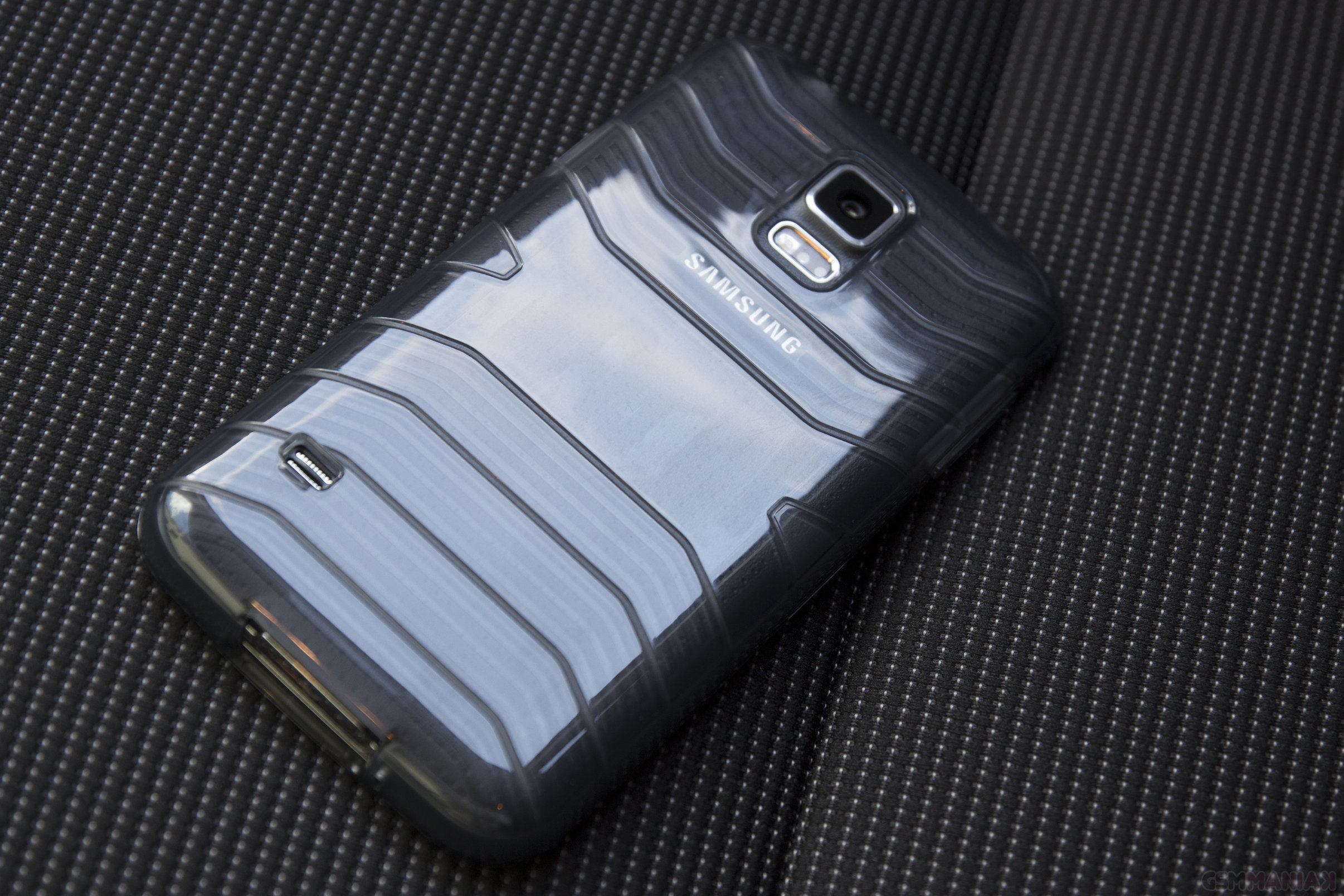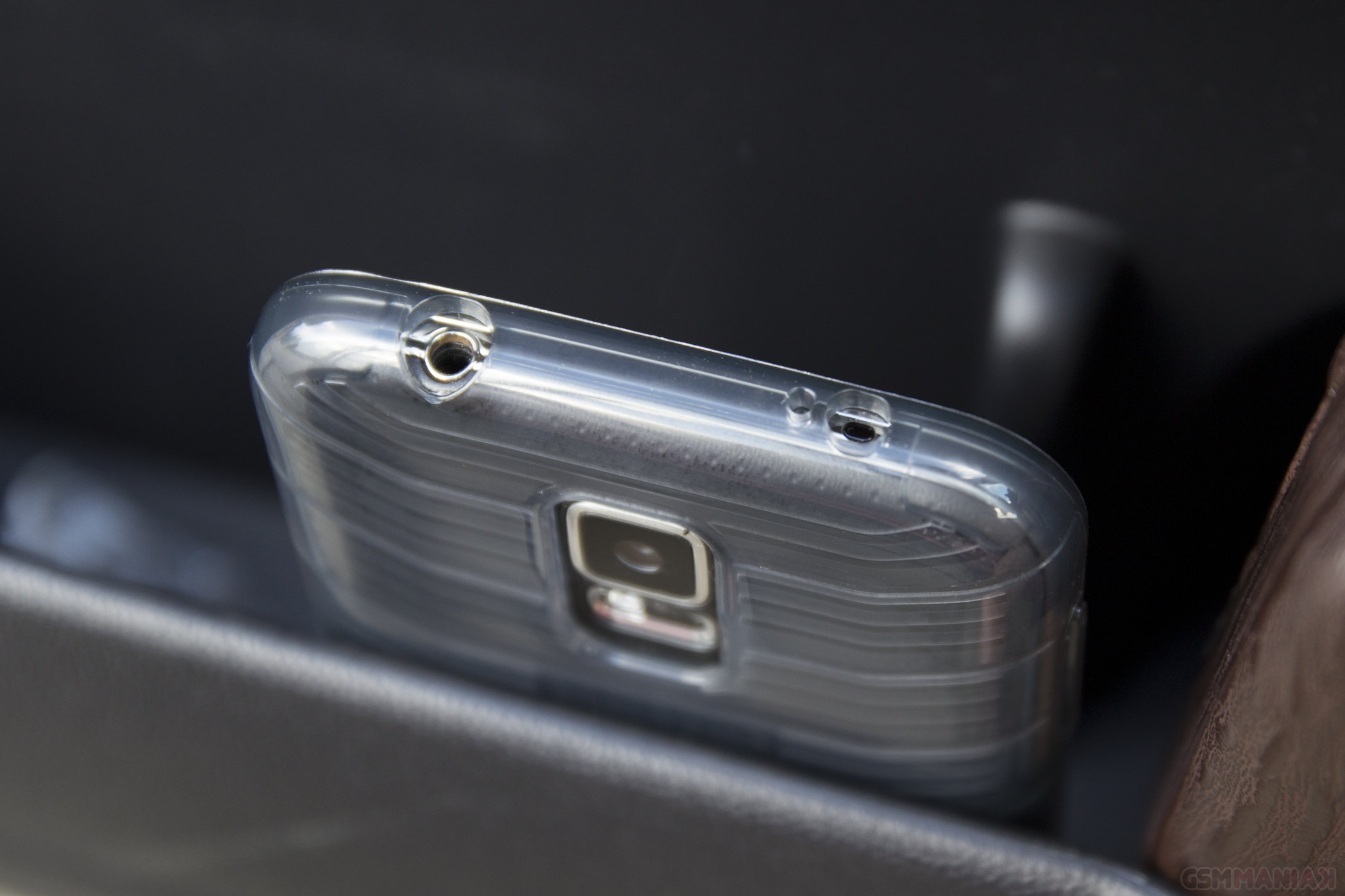W środek wklejono plastikową wstawkę, która służy do mocowania telefonu. Tutaj jedna ważna informacja — dodano również gumowy pasek występujący także po wewnętrznej stronie standardowej klapki Galaxy S5. Zadbano zatem o wodoszczelność smartfona. Otwory wycięte pod aparat, lampę błyskową i głośniki wykończono wstawkami wykonanymi z matowego plastiku. Przednia klapka posiada na samym dole tłoczone logo modelu smartfona. Całość wygląda pięknie i nie nosi żadnych śladów kiczu. Jestem pozytywnie zaskoczony.
