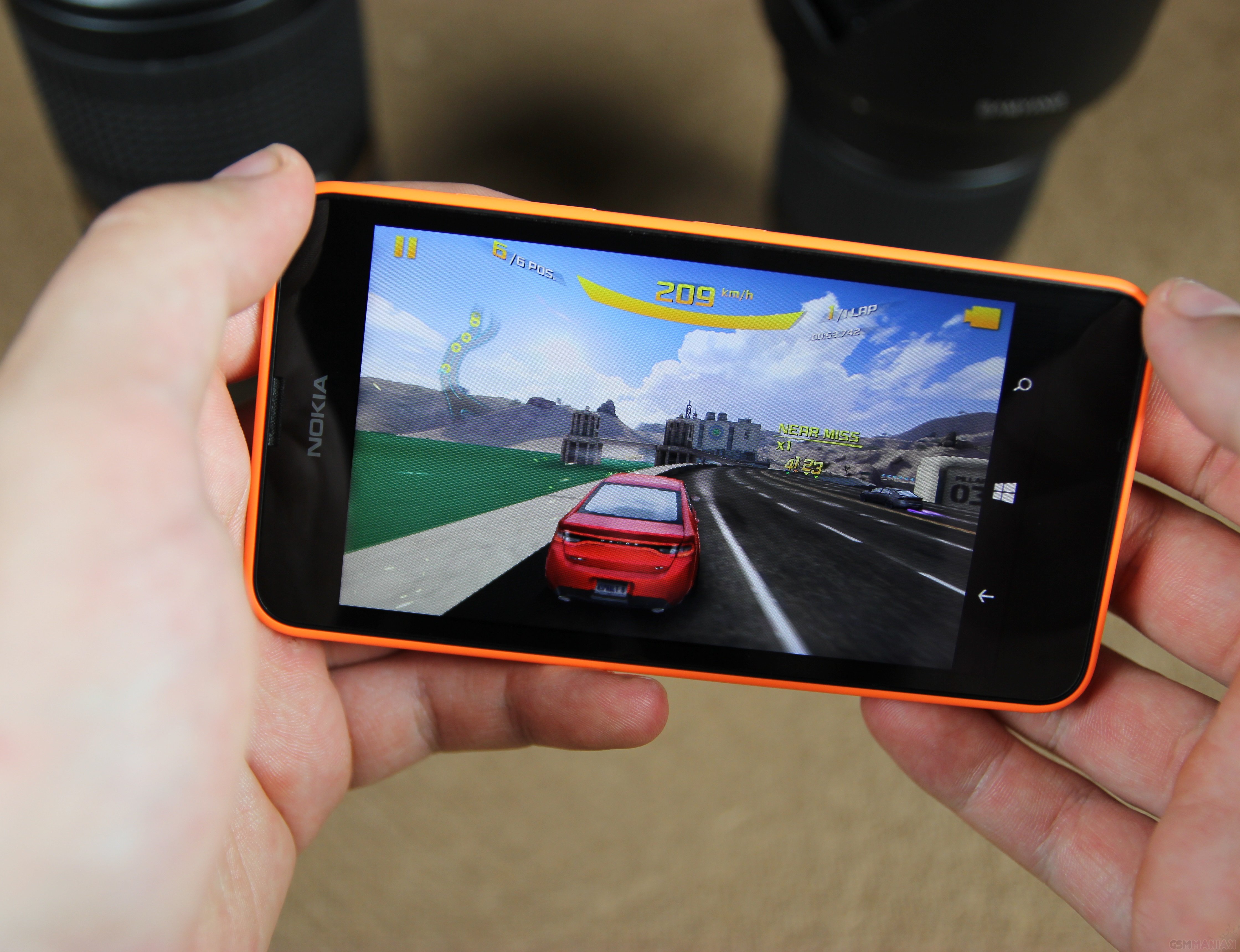 Za wydajność telefonu odpowiada czterordzeniowy procesor Snapdragon 400 o taktowaniu 1.2 Ghz, który wspierany jest przez GPU Adreno 305 i tylko 512 MB pamięci RAM. Podobna konfiguracja sprawdziła się już w poprzednich modelach z serii Lumia i tutaj również nie powinna nas zawieść. Dzięki bardzo małej zasobożerności systemu w pełni wystarcza do praktycznie każdych zastosowań. O dziwo, w ich zakresie jest również rozgrywka w zaawansowane gry takie jak Asphalt 8 czy Six Guns. Jakby tego było mało, zabawa jest płynna i przyjemna, co w urządzeniach z Androidem nie jest oczywiste nawet przy dwa razy mocniejszej specyfikacji. Microsoft po raz kolejny udowadnia, że gigaherce i megabajty to nie jedyny wyznacznik praktycznej wydajności.