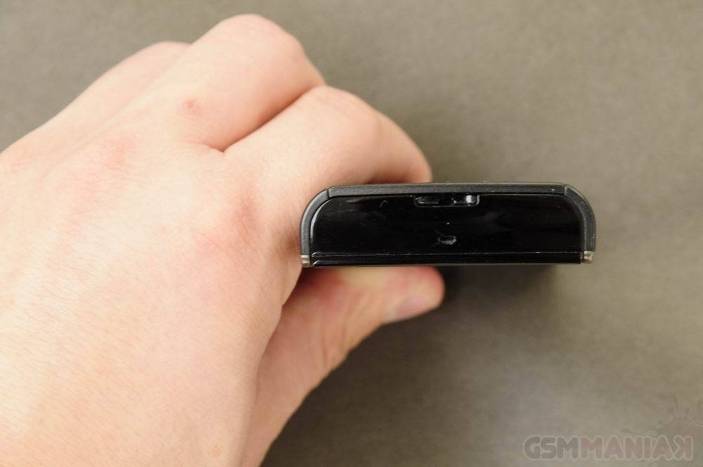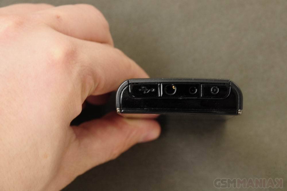 Na górnym brzegu jest przycisk do włączania telefonu, dwa wyjścia (jedno słuchawkowe 3,5mm, drugie od ładowarki) oraz chroniony zaślepką port micro USB. To miejsce prezentuje się wyjątkowo kiepsko, co zresztą dobrze widać na zdjęciu. Błyszczący plastik, nierówne odstępy pomiędzy wymienionymi elementami oraz tylną klapką wyglądają niedbale.