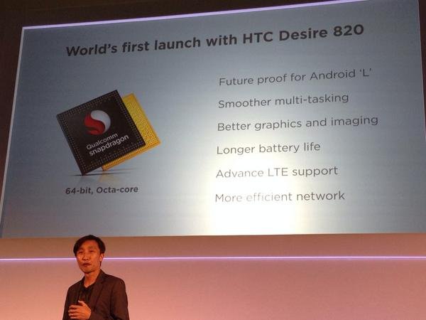 Moc obliczeniową dostarcza 64-bitowy procesor Qualcomm Snapdragon 615, który wyposażony został w cztery rdzenie ARM Cortex-A53 o maksymalnej częstotliwości taktowania 1.7 GHz i cztery pomocnicze o taktowaniu 1.0 GHz (ARM Cortex-A53). Procesor posiada zintegrowany układ graficzny Adreno 405 oraz wsparcie dla szybkiej transmisji danych w standardzie LTE (cat.4) do 150 Mbps. HTC Desire 820 zadebiutuje w sprzedaży jeszcze, w tym miesiącu.