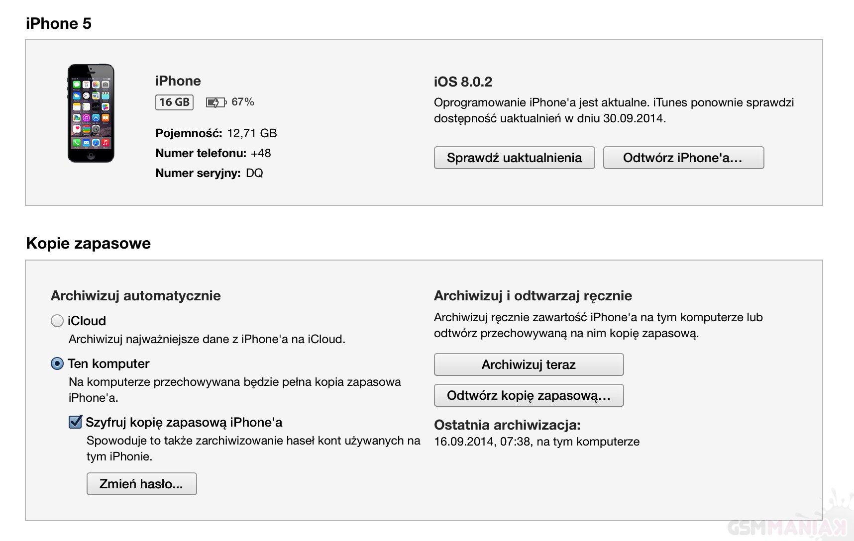 W tym celu podłącz iPhone’a do komputera, uruchom iTunesa i – wybierając swoje urządzenie w zakładce po lewej stronie – naciśnij na karcie głównej opcję Archiwizuj teraz. Proces ten, w zależności od tego, kiedy ostatnio archiwizowałeś urządzenie, nie powinien zająć więcej niż kilka minut.