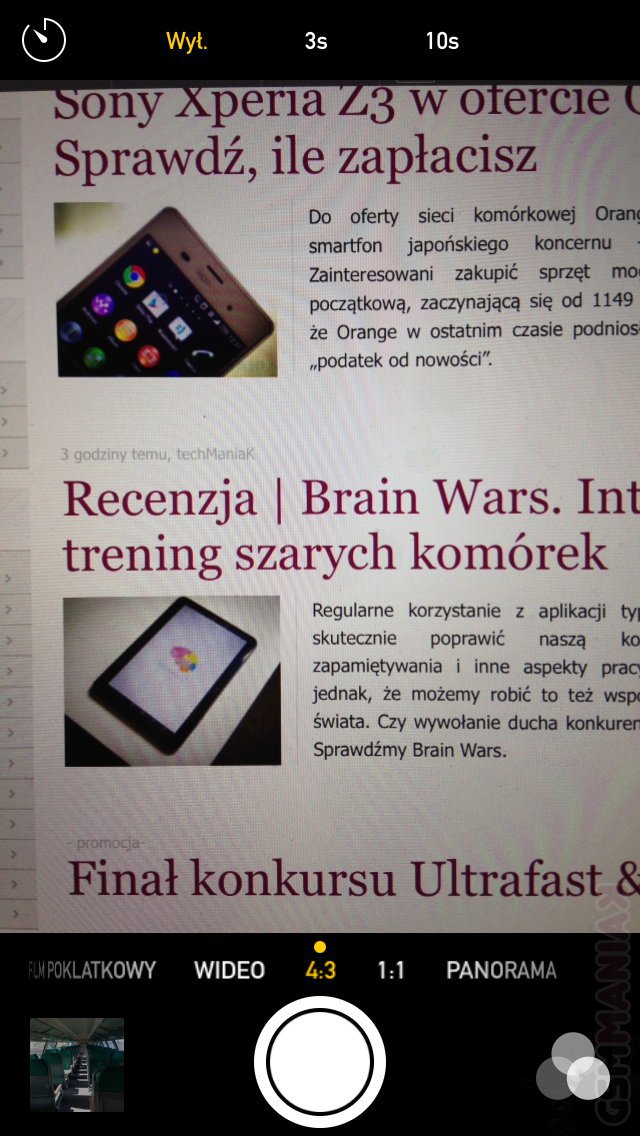 Tej funkcji latami brakowało wielu użytkownikom – w iOS 8 w końcu można korzystać z samowyzwalacza. Naciskając ikonę stopera w górnej części interfejsu Aparatu będziesz mógł ustawić, aby zdjęcie zostało zrobione 3 lub 10 sekund po naciśnięciu spustu migawki.