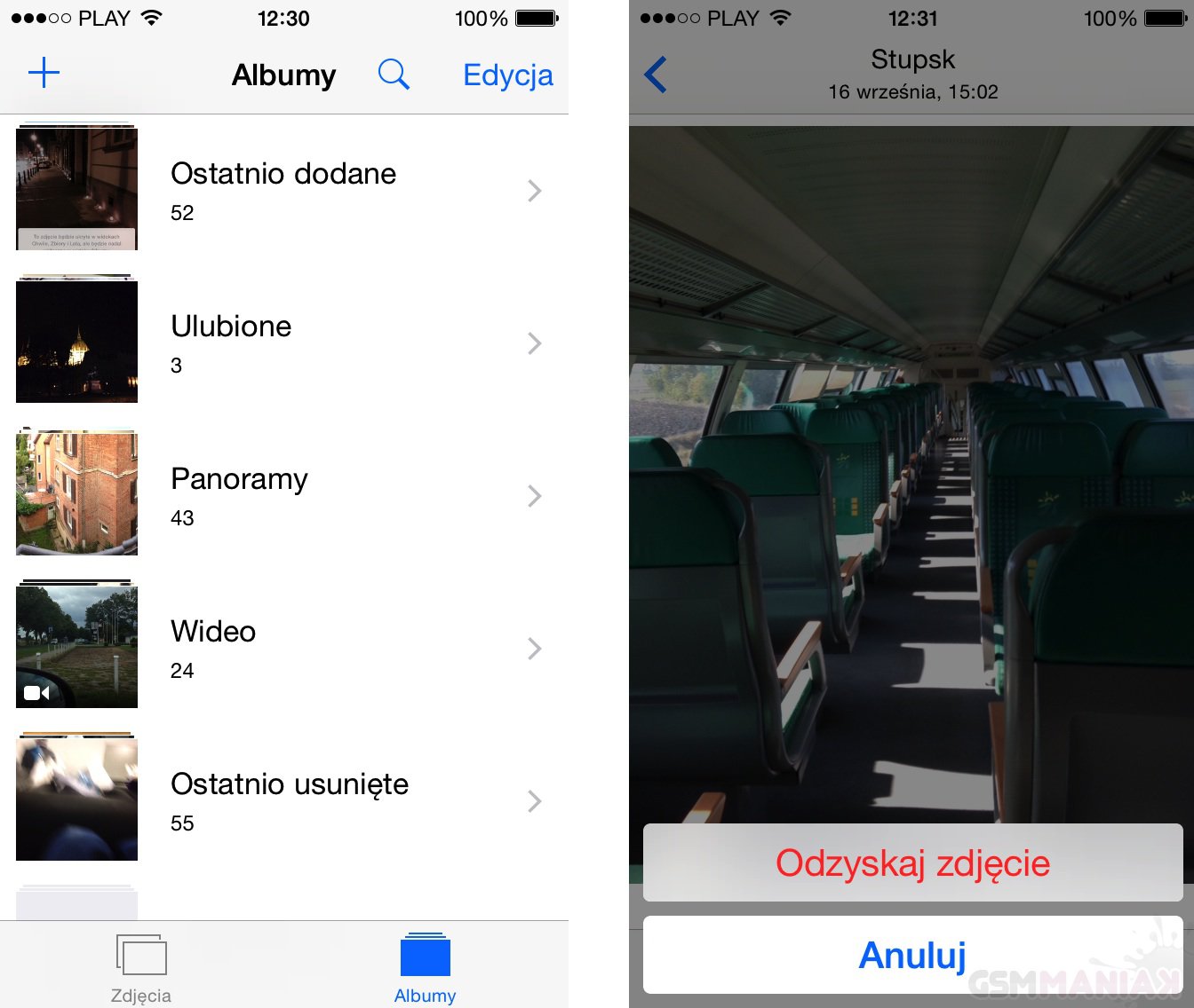 Jest to funkcja-pułapka. Otwierając aplikację Zdjęcia, a następnie Albumy, na samym dole listy ujrzysz Ostatnio usunięte. Jak sama nazwa wskazuje, jest to zbiorowisko wszystkich zdjęć i wideo, które w ostatnim czasie usunąłeś. Jeżeli więc przez pomyłkę usuniesz jakąś grafikę, szybko będziesz mógł ją przywrócić, naciskając wybraną pozycję z folderze Ostatnio usunięte, a następnie Odzyskaj. W owym folderze usunięte elementy przechowywane są przez 30 dni i przy każdej z pozycji widoczny jest wskaźnik dni pozostałych do jej permanentnego usunięcia. Pamiętaj jednak, że jeżeli bardzo będziesz chciał pozbyć się jakiegoś zdjęcia, musisz je usunąć zarówno z folderu Zdjęcia, jak i Ostatnio usuniętych.
