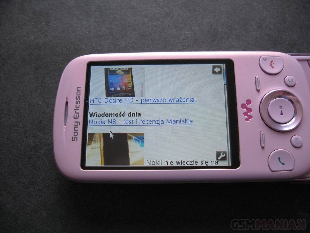 Od razu zaznaczę, że strony ładują się szybko. Charakter telefonu niesie ze sobą jednak pewne ograniczenia. Strony ładowane są bez grafiki i w bardzo uproszczonej postaci. Doskonale widać to na powyższym zdjęciu (strona www.komórkomaniak.pl). Poruszamy się po nich przy pomocy okrągłego przycisku nawigacyjnego. Ów element całkiem dobrze wywiązuje się z przypisanej mu funkcji.
