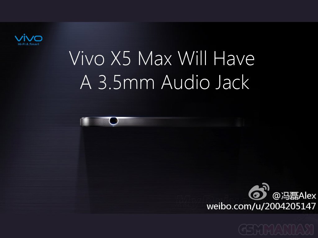 Vivo X5 Maxbędzie wyposażony w 3.5 mm wejście audio, co przy jego 4.75 mm grubości jest ciekawym wyzwaniem. Na zdjęciu widać, że trend na odchudzanie smartfonów powinien powoli skłaniać do stosowania innowacyjnych technologii, bo urządzenie cieńsze od X5 Max może mieć problem z przyjęciem znanych nam na ten moment rozwiązań.