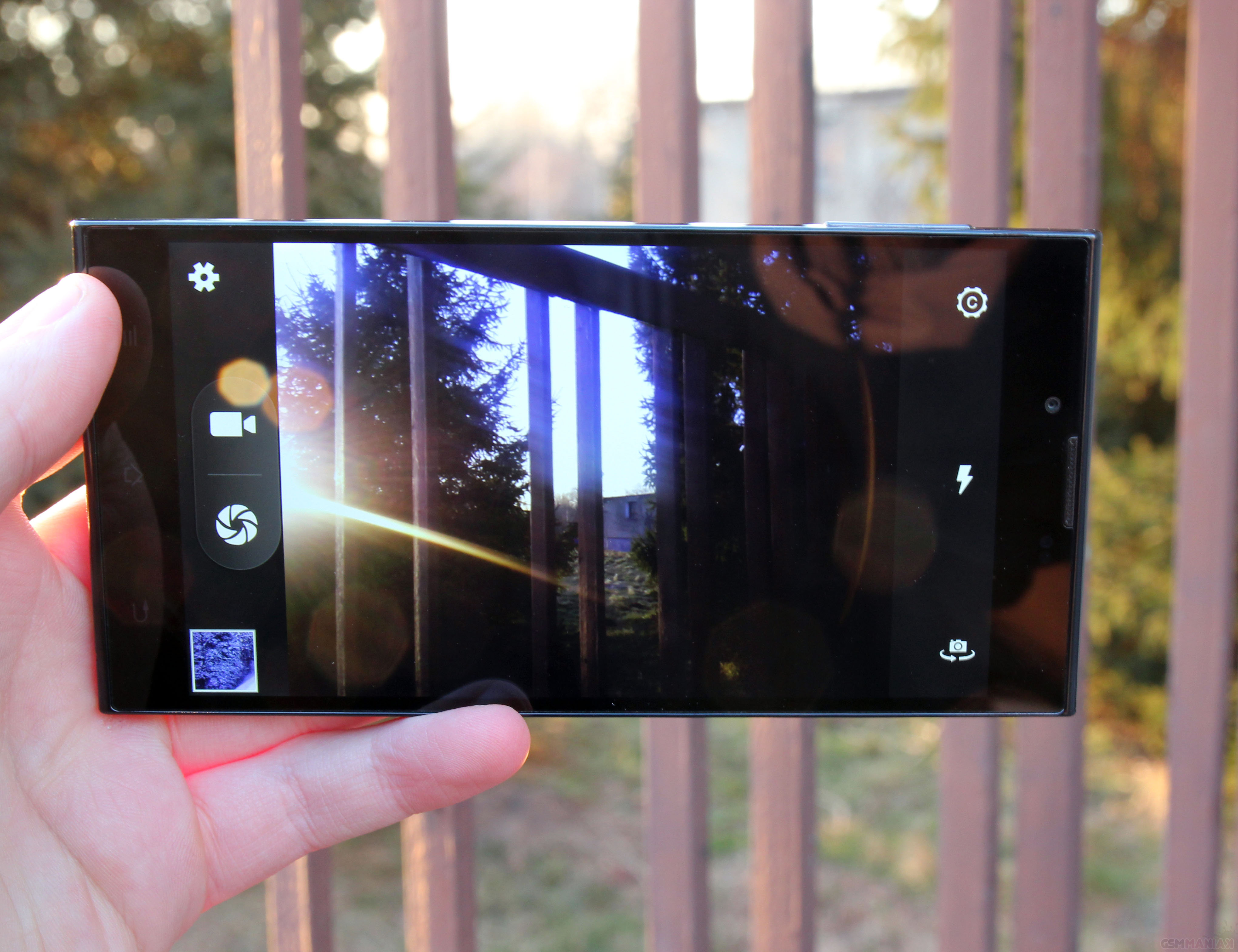 Aplikacja aparatu posiada interfejs tradycyjny dla domyślnej nakładki graficznej. Jest tutaj możliwość regulacji takich parametrów, jak rozdzielczość, ekspozycja lub tryb scenerii. Program posiada także możliwość regulacji ISO, cyfrowy zoom i sprawnie działający autofocus.