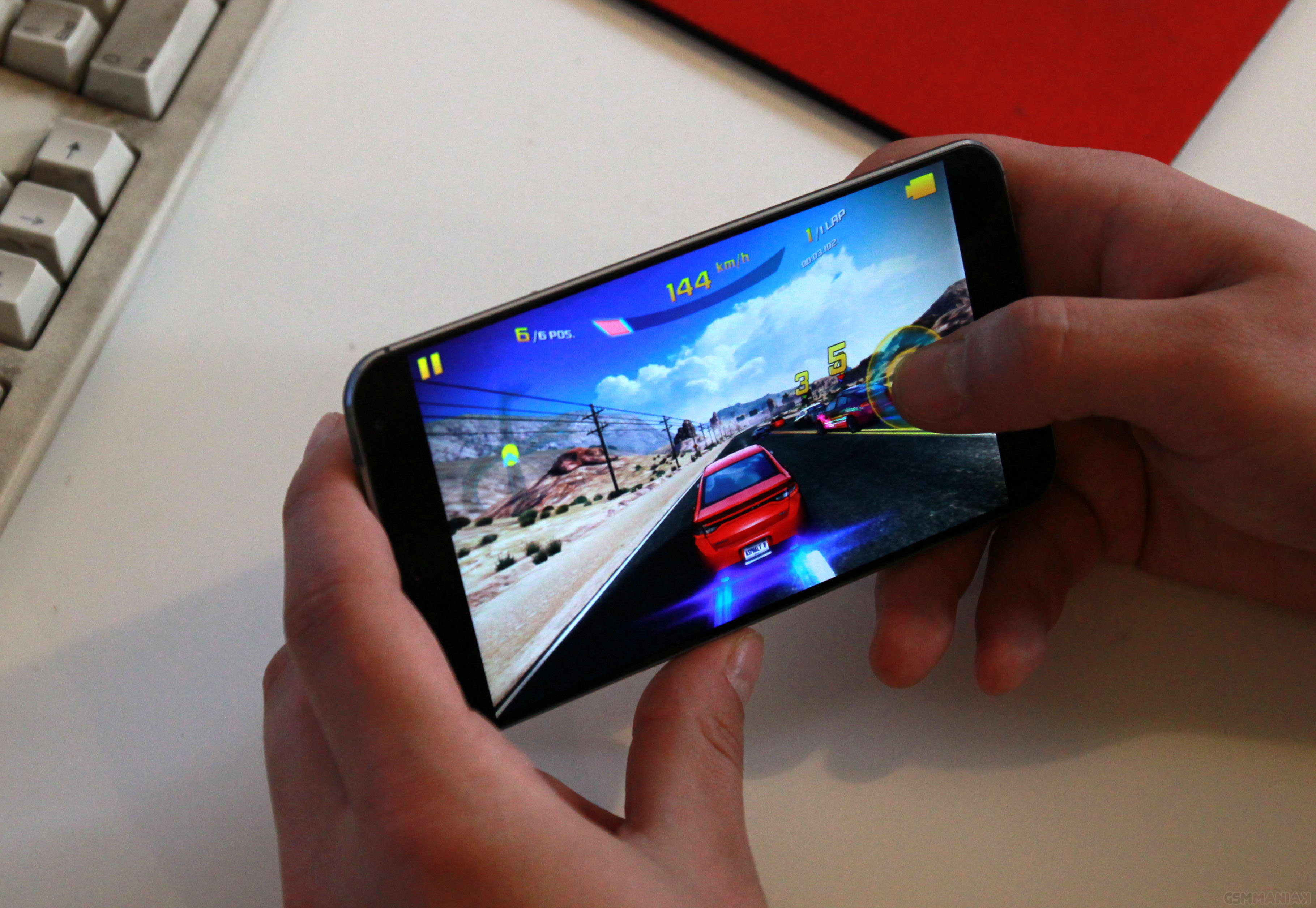 Testując gry (Asphalt 8 czy Dead Trigger 2) nie napotkałem żadnych problemów z nawet najbardziej zaawansowanymi tytułami. We wszystkich przypadkach rozgrywka była idealnie płynna na najwyższych detalach. Jedyną grą, która sprawiła problemy był Real Boxing. Telefon miał ewidentnie problem z poprawnym rednerowaniem grafiki ponieważ pojawiały się prześwity, tekstury nakładały się na siebie lub nie wczytywały. Warto zwrócić uwagę także na szybkie nagrzewanie się obudowy i podzespołów. Skutkuje to tym, że po kilkunastu minutach intensywnej rozgrywki w wymagającą grę, na najwyższych detalach widać wyraźne spowolnienie animacji.