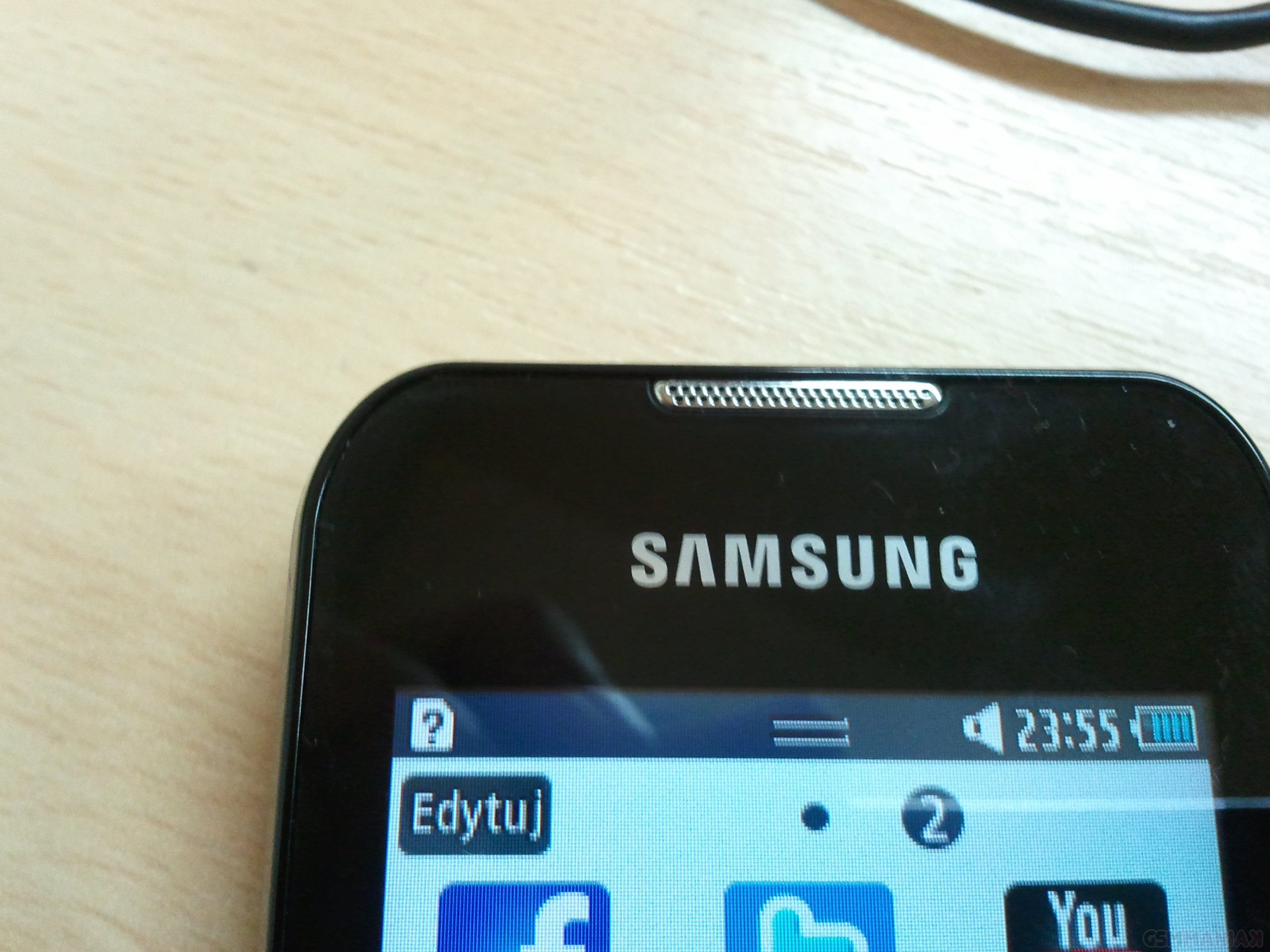 Wprawdzie telefon obiega ładna, metalizowana ramka, trzy główne przyciski także prezentują się pozytywnie, ale wspomniana wcześniej wrażliwość na palcowanie może być nieco irytująca. Z przodu, koło głośnika znajdującego się nad logiem firmy Samsung powinna znajdować się kamerka do wideorozmów – powinna, ale niestety jej nie ma. Trochę szkoda, ale to chyba nie ta klasa telefonu.
