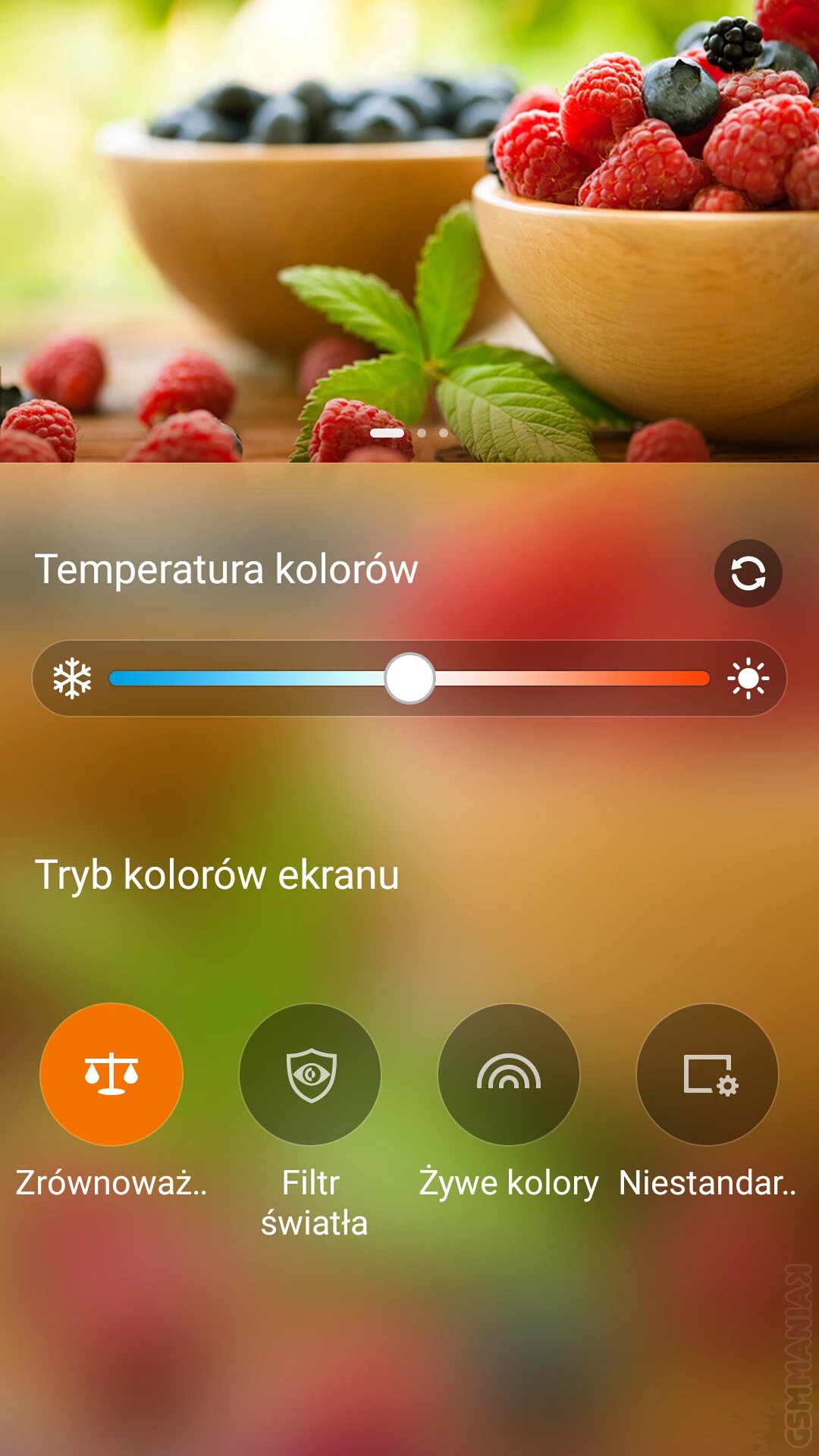 W smartfonie pojawia się ponadto specjalny tryb korekty wyświetlanych kolorów. Splendid, bo tak ASUS określił swoją aplikację, umożliwia nam modyfikowanie balansu bieli, wybór jednego z trzech predefiniowanych trybów wyświetlania lub zapisanie swojego, w ramach którego określimy również nasycenie barw.