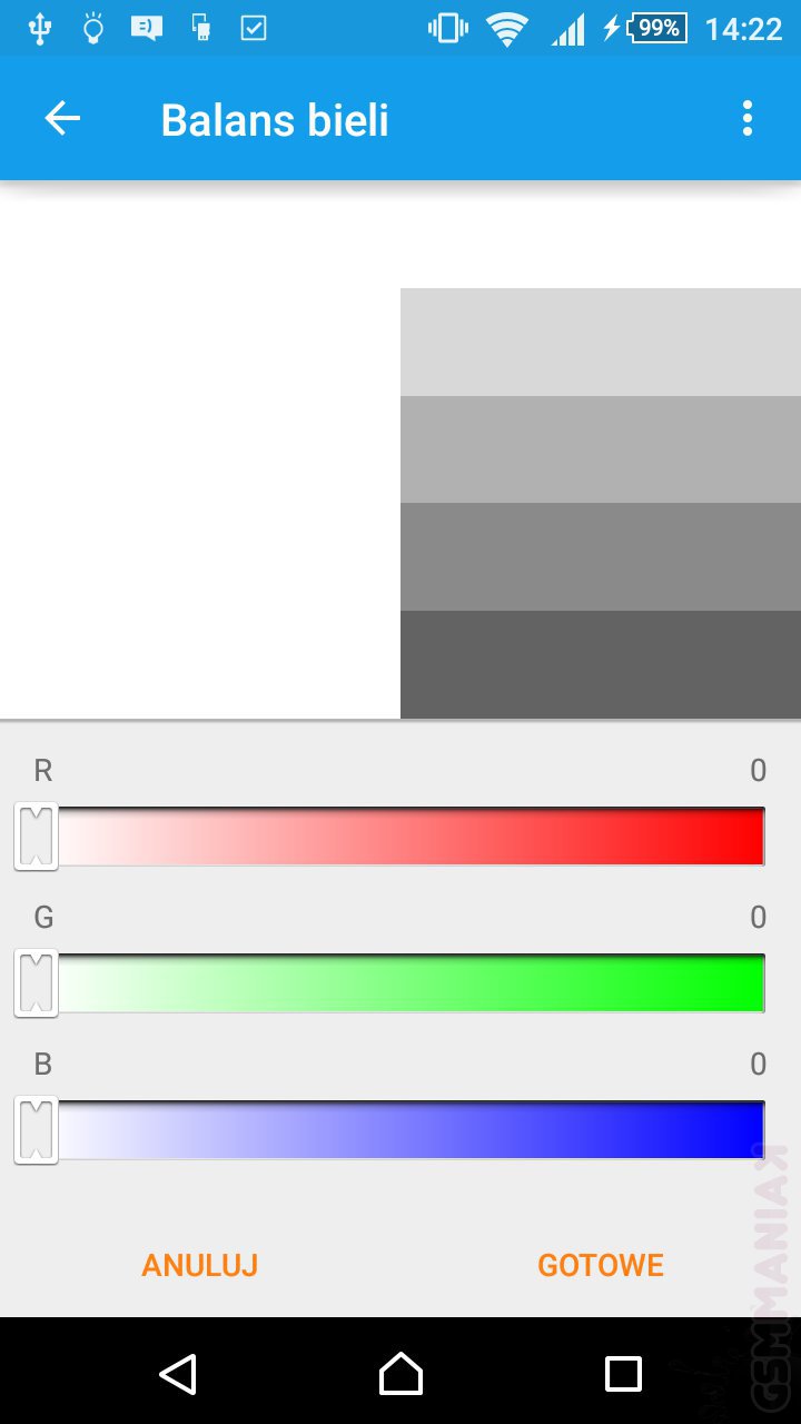 Fabrycznie instalowany profil kolorystyczny posiada przesunięty punkt bieli w stronę zimnych kolorów, lecz i tym razem mamy do dyspozycji kalibrator umożliwiający dostosowanie palety do naszych indywidualnych preferencji. Znajdziemy go w ustawieniach telefonu w zakładce wyświetlacza.