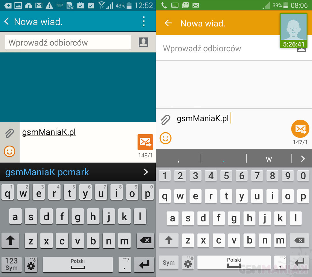 Dla porównania zamieszczam zrzuty ekranowe obu klawiatur. W większym modelu poszczególne klawisze są bardziej rozstrzelone, dlatego łatwiej mi w nie trafić. A5 także dobrze leży w dłoni, więc telefon wygodnie się trzyma podczas prowadzenia rozmów.