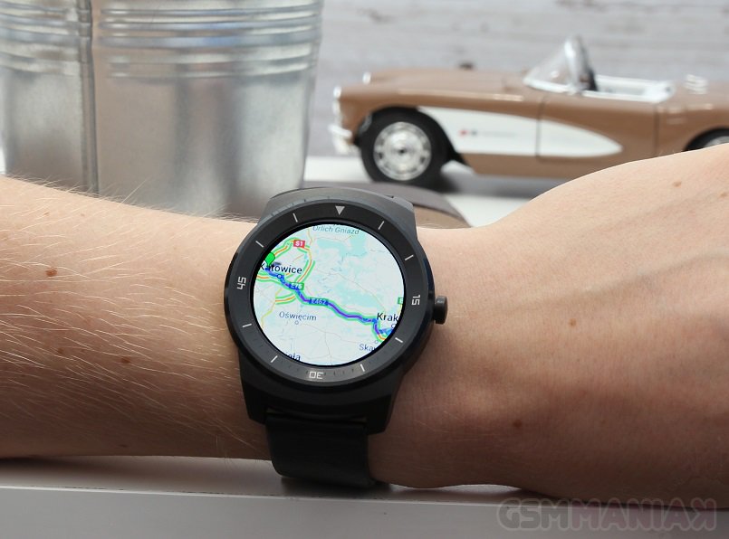 Na pochwałę zasługuje nawigacja współpracująca z Google Maps – zegarek w dyskretny a zarazem wygodny sposób, wibracjami informuje nas o tym, w którą z uliczek skręcić. Wspomni o korkach oraz ewentualnym czasie podróży. Funkcja ta będzie zbawieniem dla motocyklistów i rowerzystów, którzy nie zawsze mogą wyciągnąć telefon.