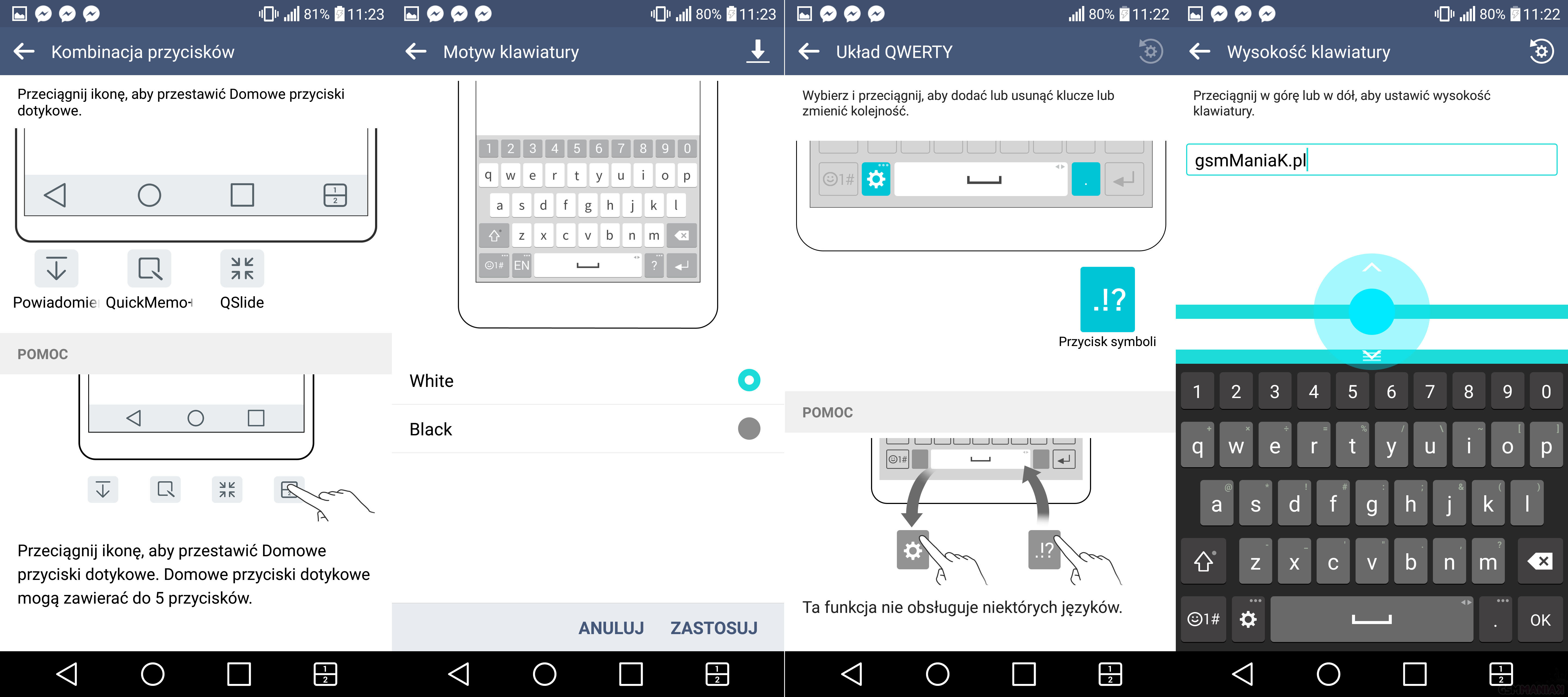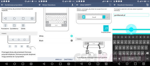 Telefon posiada fantastyczną klawiaturą ekranową, która charakteryzuje silnie rozbudowany system personalizacji. Tak samo jak w G3, tak i tu możemy dostosować wielkość klawiszy oraz ich układ: dołożyć dodatkowy rząd z przyciskami numerycznymi, zmienić typ klawiatury w trybie krajobrazowym, czy włączyć tryb obsługi jedną ręką. Dzięki takiemu nagromadzeniu opcji udało mi się dostosować klawiaturę do własnych potrzeb. Pisanie wiadomości z G4 to czysta przyjemność!