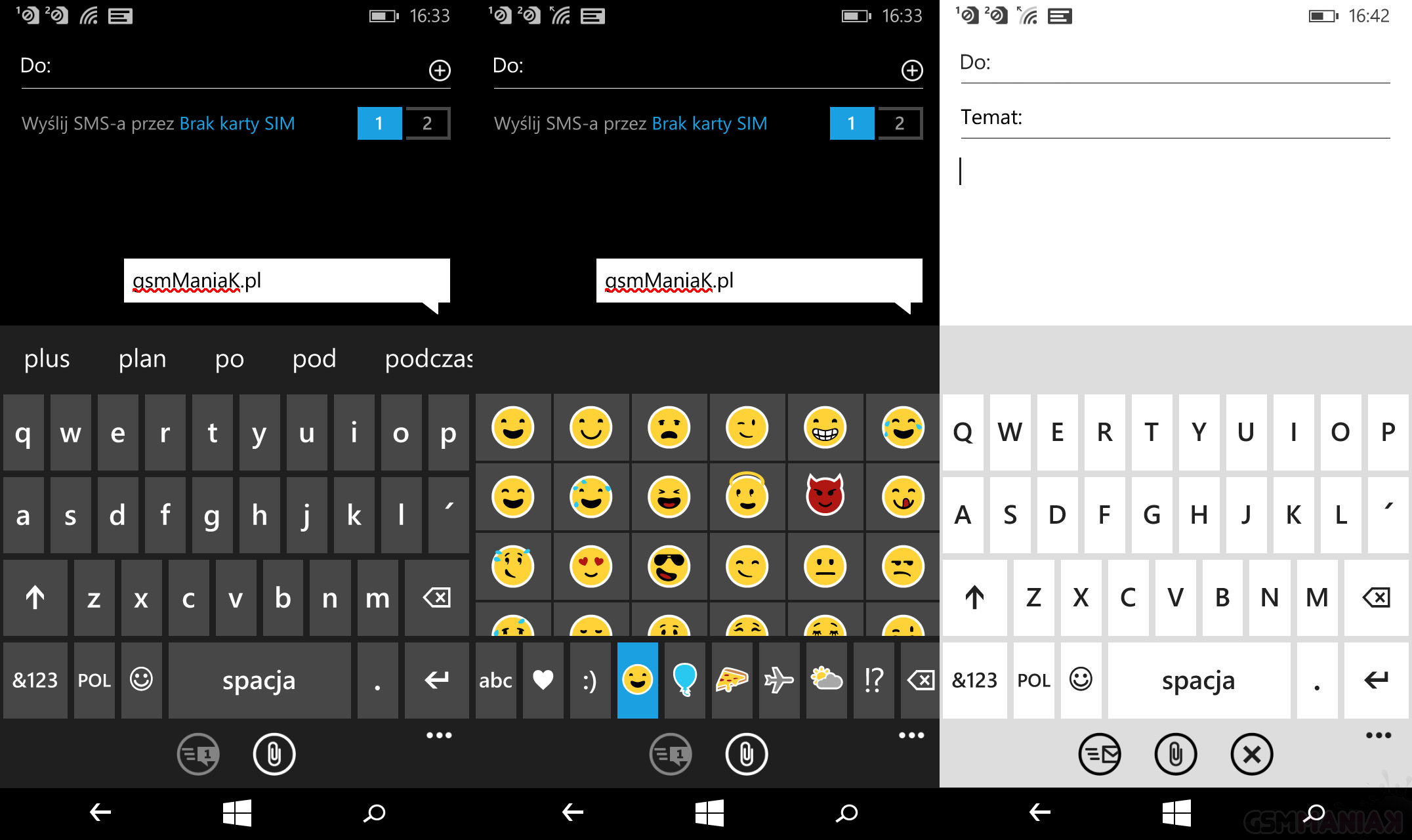 Pisanie wiadomości tekstowych to czysta przyjemność — daję słowo. Klawisze mają odpowiedni rozmiar i przy pisaniu obiema rękami szybko nauczymy się sprawnie wprowadzać tekst. Możemy także skorzystać z funkcji wpisywania przy pomocy rysowania ciągłej linii po klawiaturze, a wysyłany tekst upiększyć emoji.