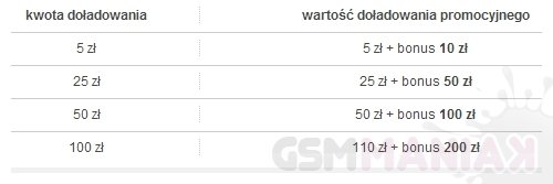 Promocja nie dotyczy jednak doładowań za punkty uzyskane w programie profit, doładowań reklamacyjnych, doładowań poprzez usługę Przelew SMS lub Doładuj Mix oraz doładowań poprzez SMS-a wysłanego pod numer 880 lub 8011.