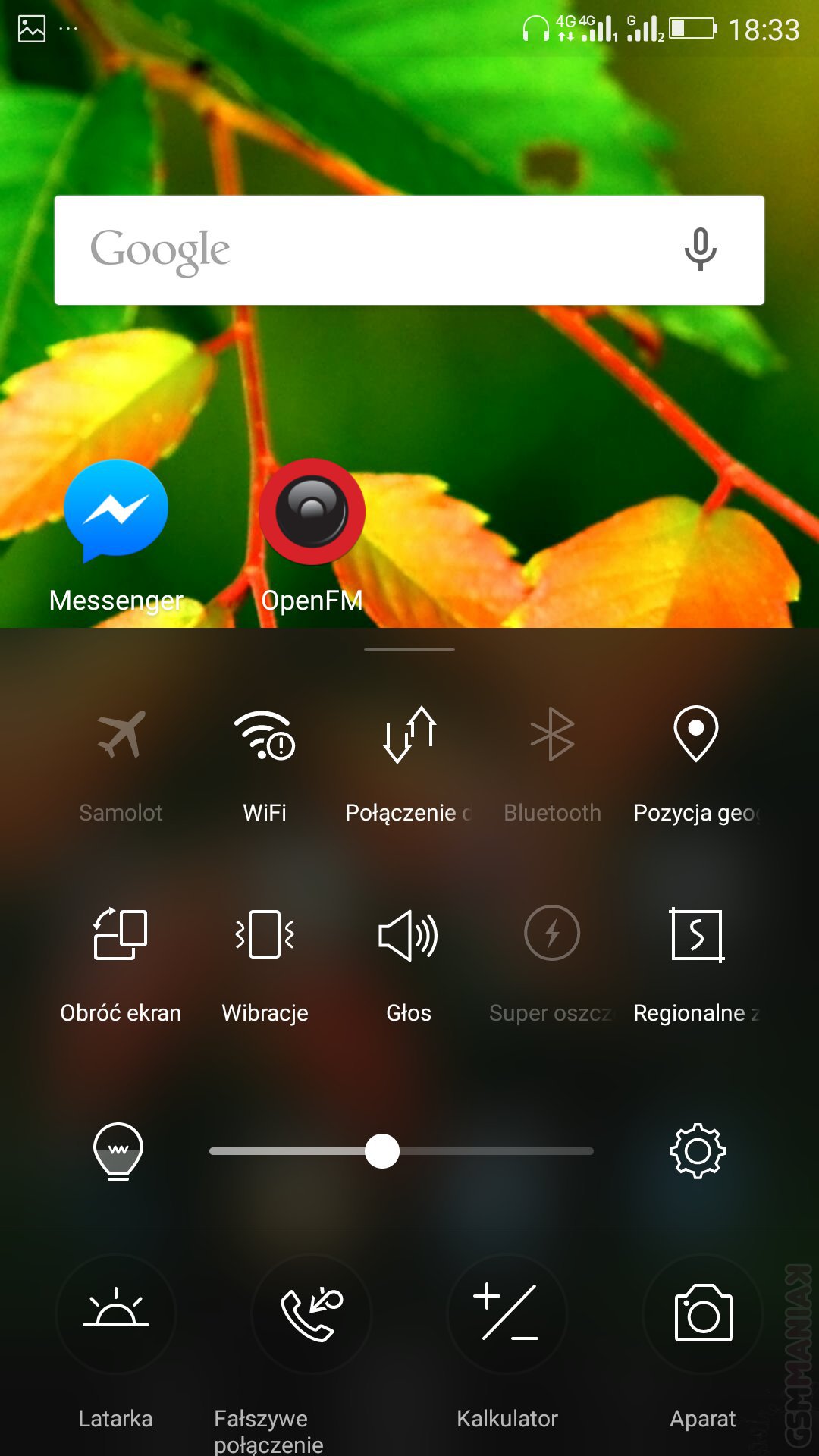 Telefon działa na Androidzie 5.0 Lollipop z ciekawą nakładką systemową. Jest ona ładna i przejrzysta, posiada wiele dodatkowych funkcji, a przy tym nie obciąża przesadnie podzespołów telefonu. Oprócz standardowych dla czystego Androida funkcji, mamy kilka ciekawych rozwiązań np. pasek z podstawowymi ustawieniami wysuwany z dołu (jak w iOS), rozbudowaną obsługę gestów czy zupełnie odmienioną aplikację aparatu. Jest też bardzo duże pole do działania jeśli chodzi o personalizację interfejsu – mamy aplikację Park Motywów i Kameleon. Szybkość działania nakładki jest niemal idealna, czas przechodzenia pomiędzy aplikacjami i reakcja na polecenia są zaskakująco sprawne.