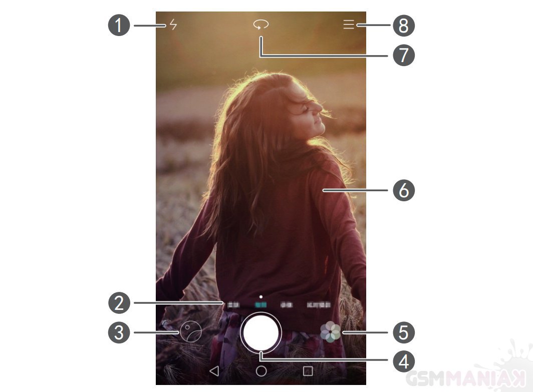 - 7 – przełączanie między aparatem główny, a przednim;
