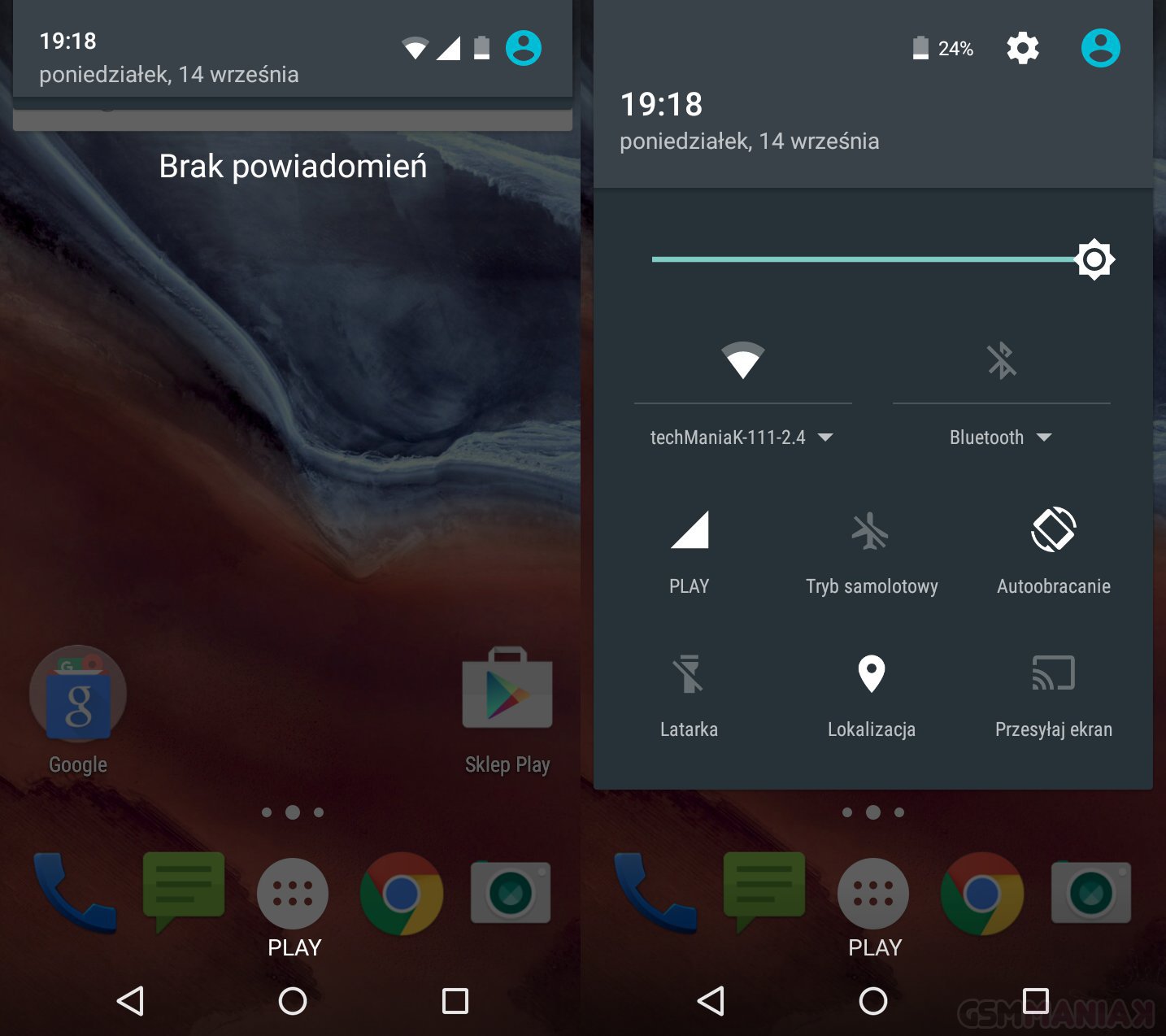 Jak wspominałem, Motorola Moto G 3 pracuje w oparciu o prawie nie naruszony system Android 5.1.1 – nie spotkamy tutaj żadnych fikuśnych nakładek graficznych. Jednym pewnie nie spodoba się ten fakt, lecz ja uważam to za zaletę. Każdy powinien odnaleźć się tu bez problemu – górna belka działa teraz dwu stopniowo, jedno pociągnięcie w dół pokazuje wszystkie powiadomienia, kolejne zaś otworzy menu z podstawowymi opcjami i funkcjami telefonu. Z pozycji ekranu głównego, przesunięciem palca w bok można bezpośrednio przejść do Google Now.