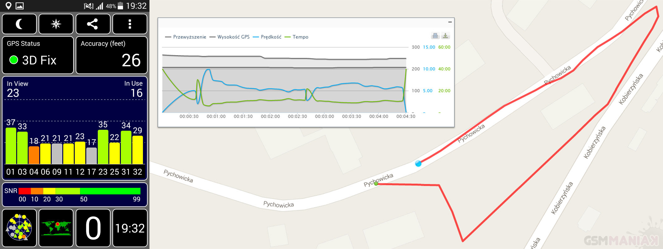 GPS, wspierany przez A-GPS i GLONASS, szybko lokalizuje położenie użytkownika, choć jego dokładność (do ok. 8-9 metrów) pozostawia wiele do życzenia. Praktyczne użytkowanie pokazuje jednak, że precyzja działa przy wsparciu A-GPS jest wystarczająca do większości zastosowań. Trochę gorzej jest wtedy, gdy bazujemy wyłącznie na GPS-ie; czas ustalania położenia rośnie z kilku do prawie 30 sekund.
