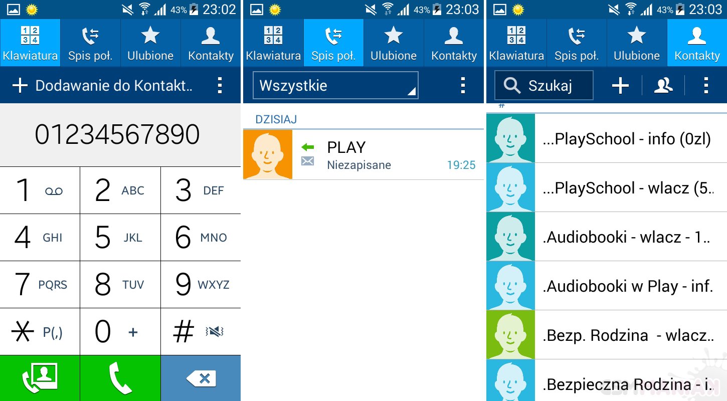 Aplikacja dialera jest intuicyjnie rozplanowana i prosta w użytku. Duże przyciski z klawiszami pozwalają na szybkie wybranie numeru, a cztery zakładki w górnej części ekranu przeniosą nas odpowiednio do rejestru połączeń, ulubionych i kontaktów.
