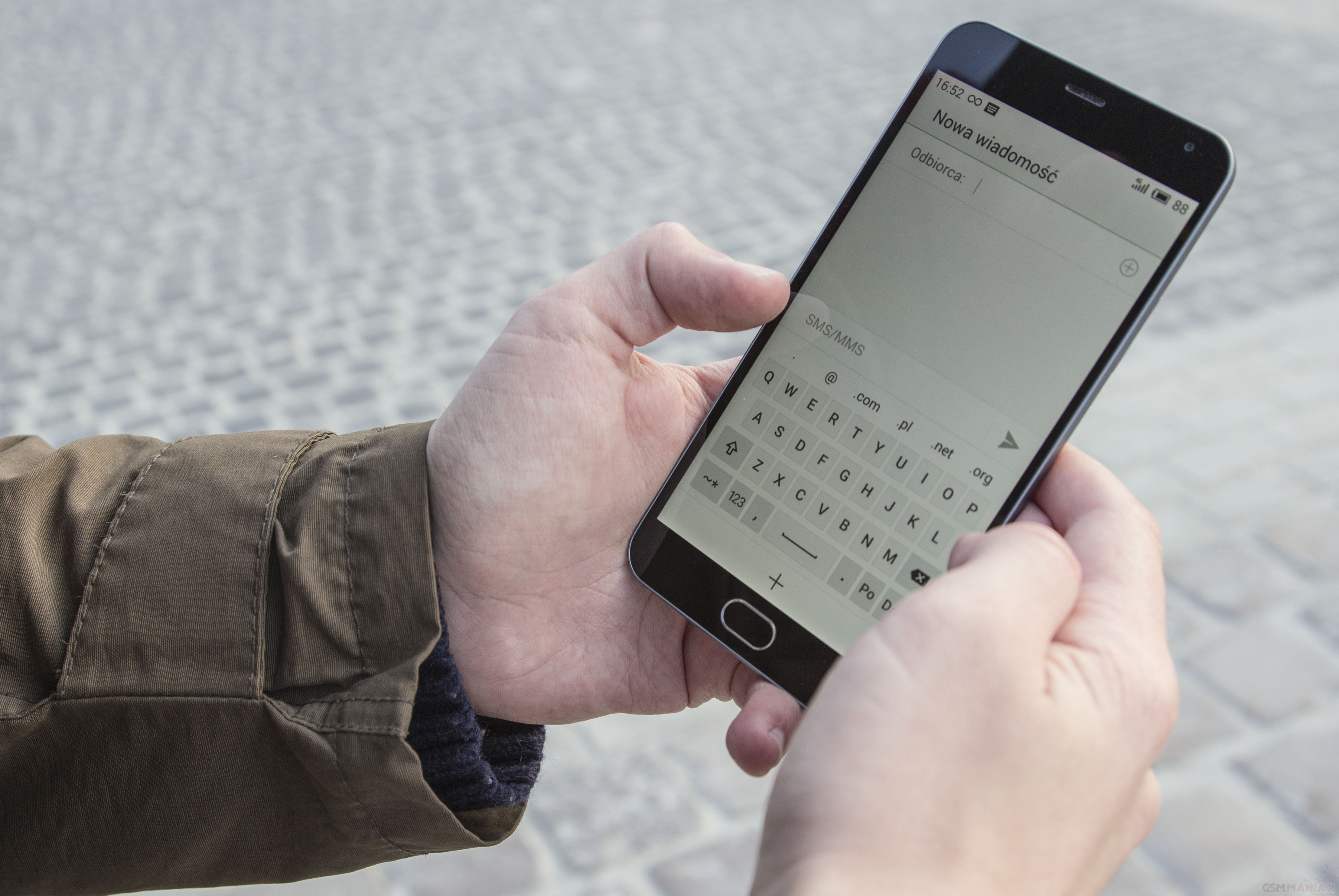 Klawiatury ekranowe — dialera oraz qwerty — są bardzo wygodne, ale wymagają użycia obu rąk. O ile jeszcze na dialerze potrafiłbym wybrać numer kciukiem jednej dłoni, to pisanie wiadomości tekstowych bez posiłkowaniem się drugiej dłoni byłoby po prostu niewygodne. Klawiatura Meizu posiada duże klawisze, dlatego dobrze się z niej korzysta, ale zabrakło mi autokorekty lub choćby systemu wstawiającego polskie znaki.